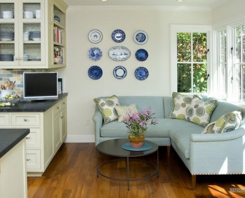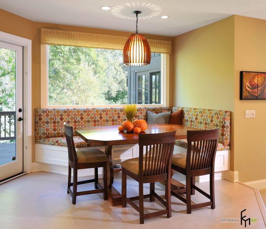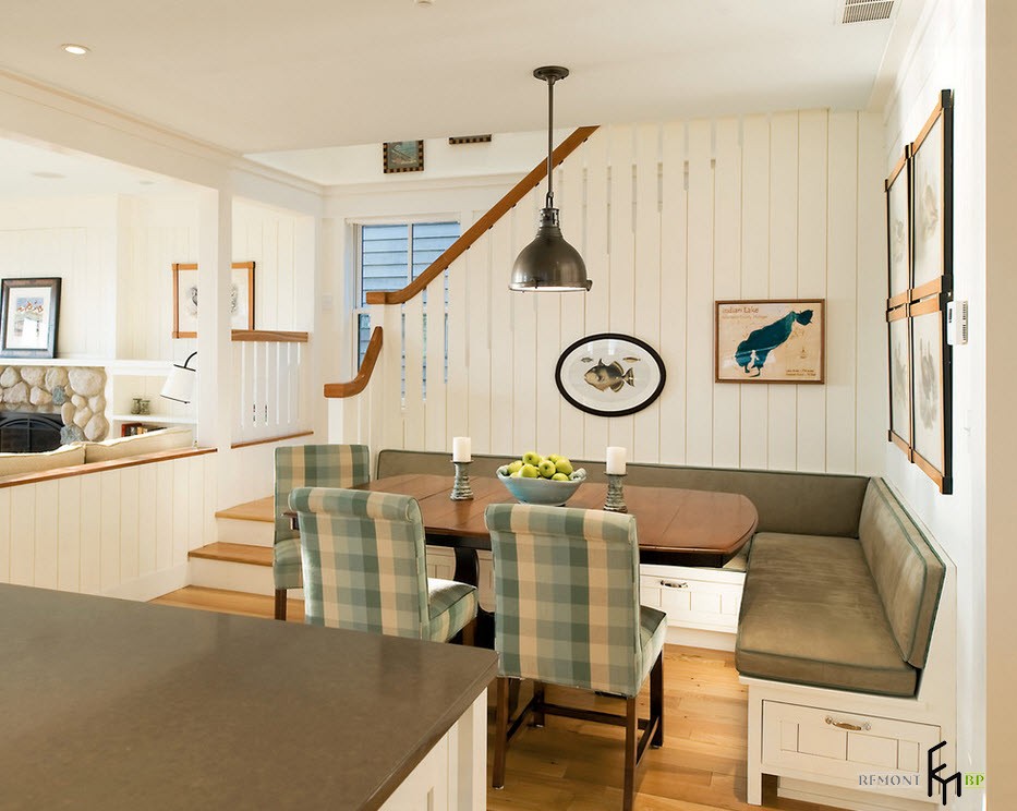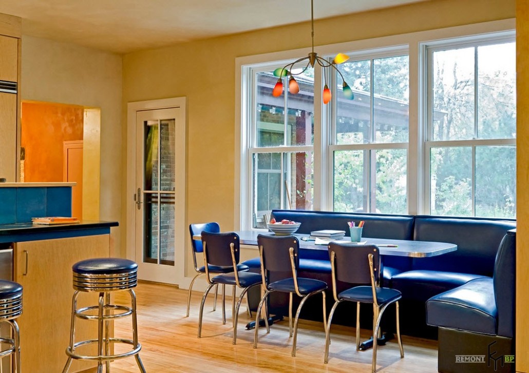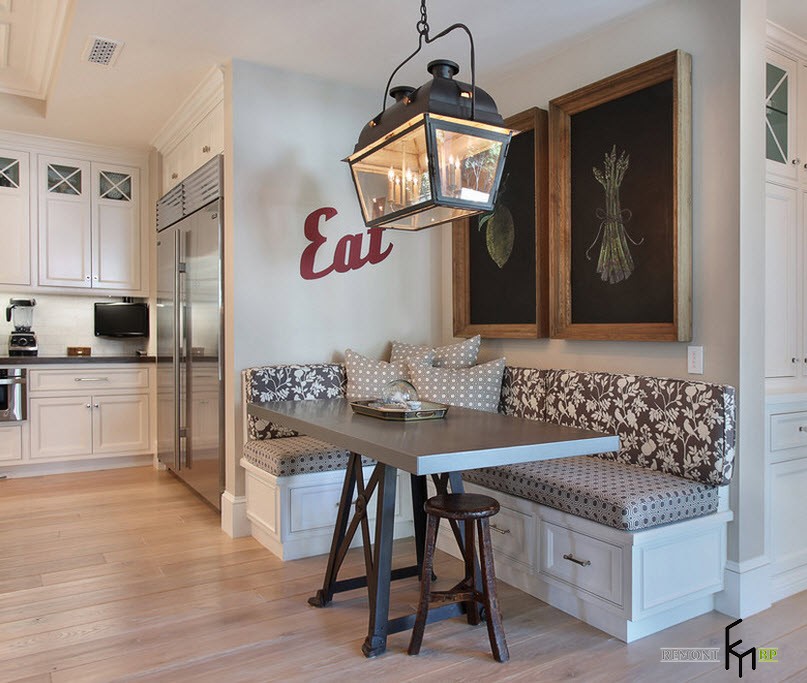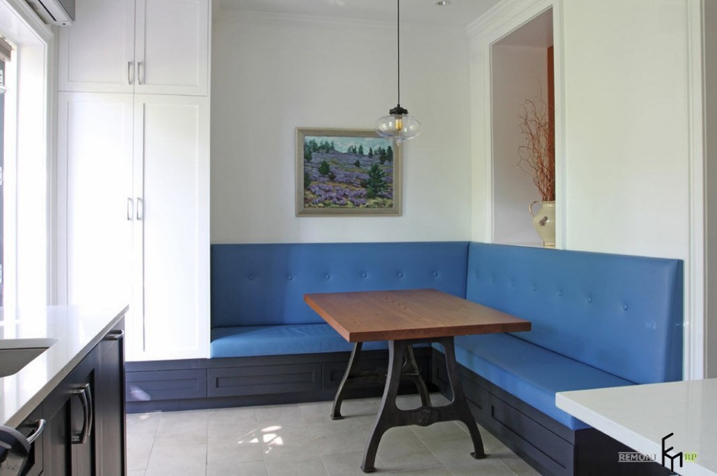 Обычно это диваны с кожаной или тканевой обивкой, имеющей множество цветов, рисунков и фактуры. Ваш выбор, конечно, должен зависеть от общего стилевого решения для кухонной комнаты.