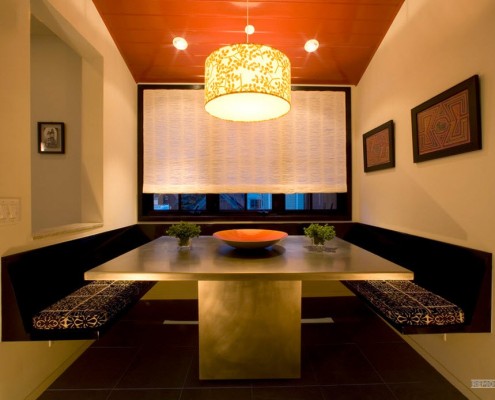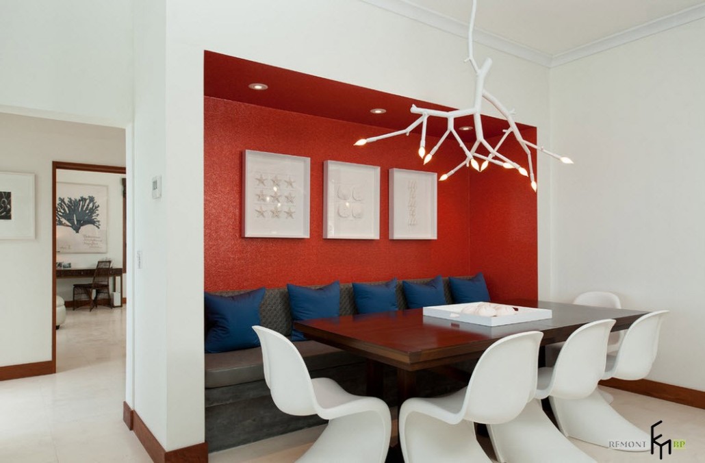 Конечно, лучшим вариантом будет красивая люстра, висящая над центром обеденного стола. Хороший вкус и выбор позволит вам таким образом украсить пространство вокруг уголка.