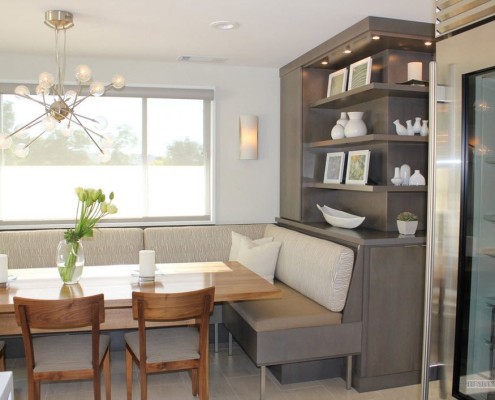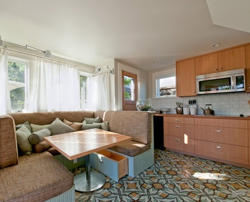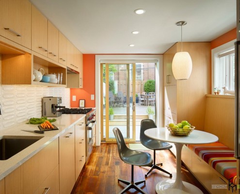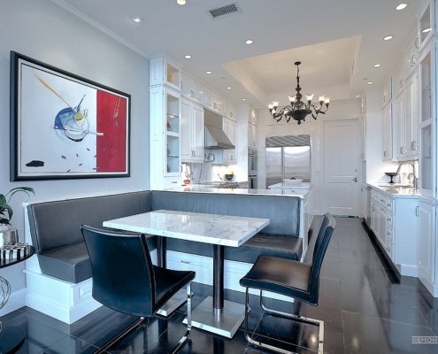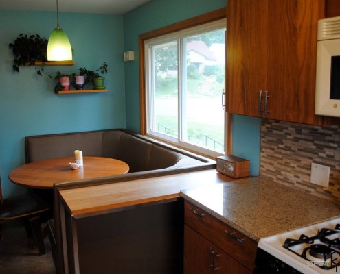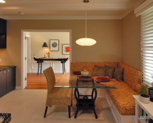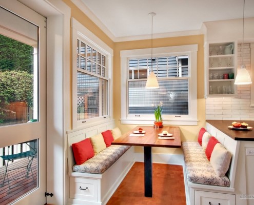 - теперь у вас появится вполне комфортное место не только для семейного приема пищи, но и для застолья, правда, с небольшим количеством гостей, своего рода мини гостиная. Это очень удобно, так как в этом случае нет необходимости использовать пространство гостиной. Любая хозяйка это очень высоко оценит.