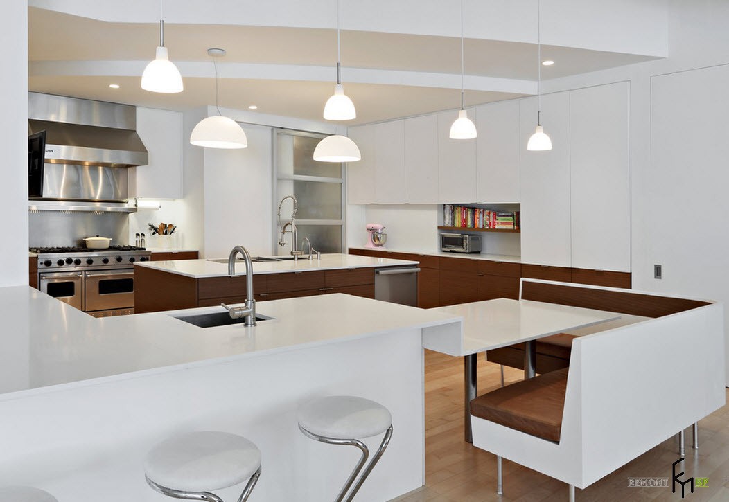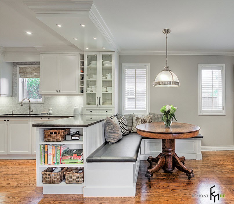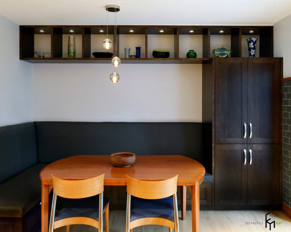 Теперь, если после ознакомления со всеми плюсами и минусами, вы не оставили мысль расположить на кухне уголок, знакомимся с вариантами его исполнения и дизайна.