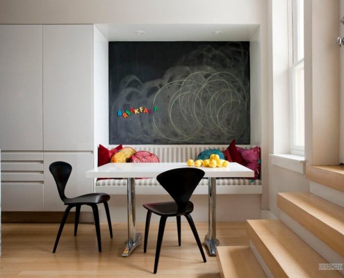 Кресла за обеденным столом не рекомендуются, потому что обычно глубина их сиденья не позволит вам и гостям удобно расположиться и принимать пищу. Поэтому стулья будут намного удобнее. Кстати, стулья можно заменить в любой момент на другие понравившиеся вам. Так же их можно «разбавить» стульями другого вида, что добавит некоторую оригинальность в интерьер уголка.