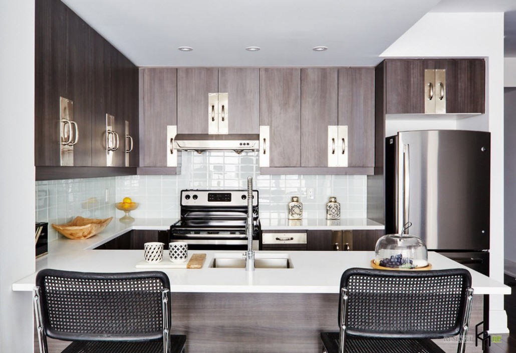 Интересно смотрится и кухня в классическом стиле. Оформление этого помещения требует особенного подхода, так как обилие техники и сантехнического оборудования предполагает изготовление специфической мебели. Выезжающие блоки и ниши способны скрыть современную технику. Металлические элементы должны быть стилизованы под классику.