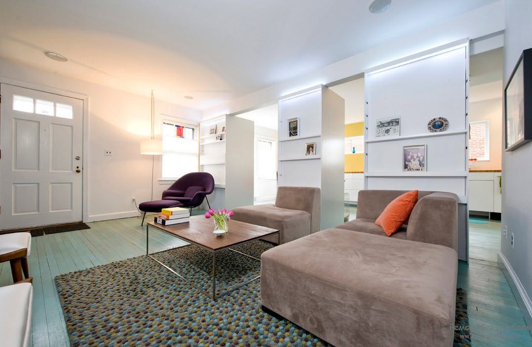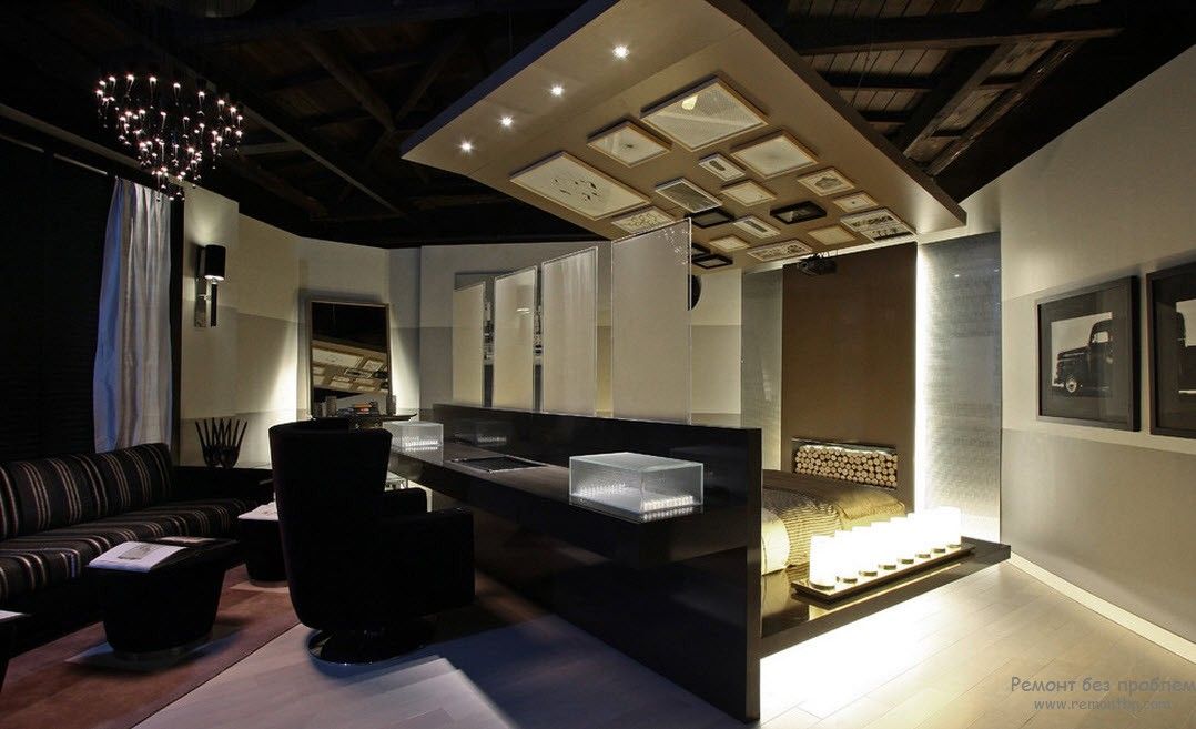 Необходимые перегородки вы можете уже самостоятельно сооружать, отгораживая, к примеру, кровать.