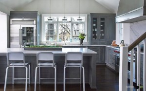 Гладкие фасады кухонных шкафов не имеют фурнитуры, что придает им весьма современный вид. Подобное исполнением кухонных шкафов – без ручек, на магнитных доводчиках, свойственно не только современной стилистике, но и любому проявлению минимализма в интерьере.