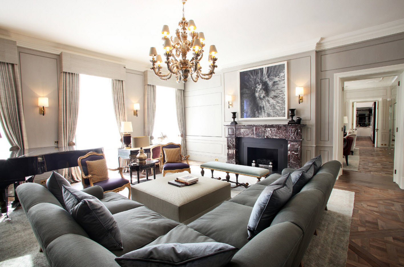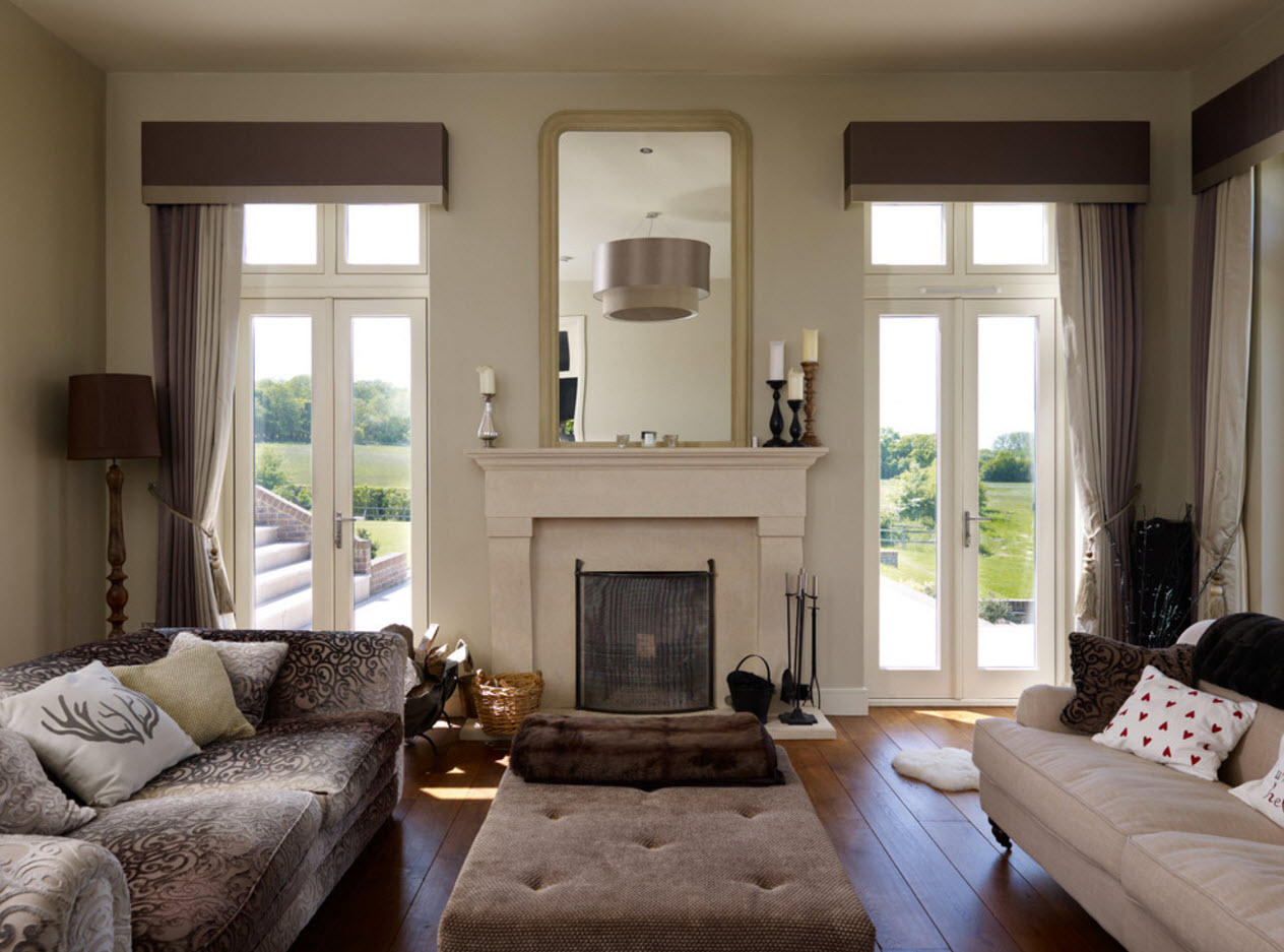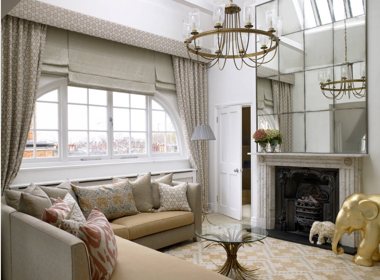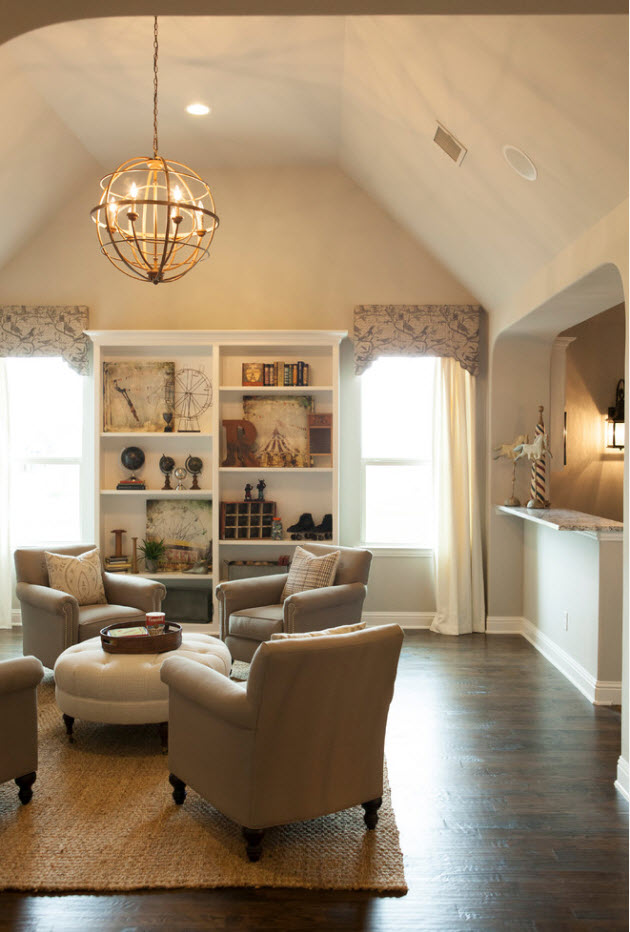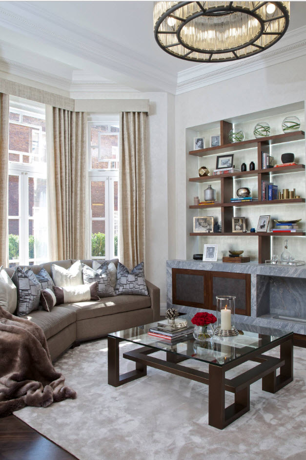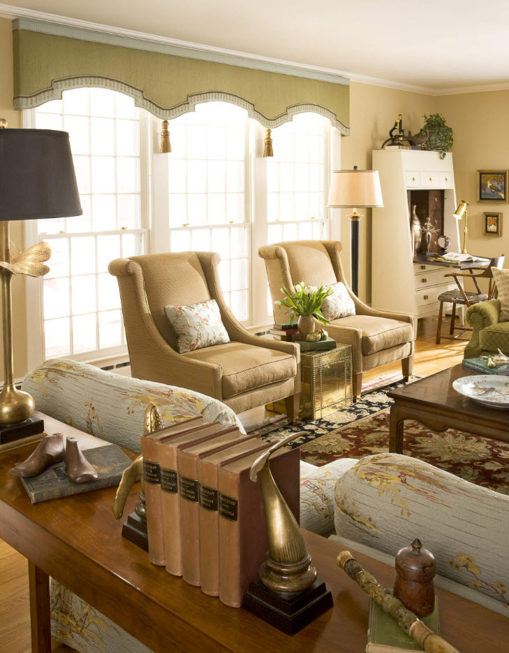 Гостиная – визитная карточка любого жилища. В этой комнате собирается по вечерам вся семья для отдыха и общения, именно здесь принимаются гости по выходным и праздникам. Залу или гостиной необходимо быть непросто комфортными, функциональными и практичными, но и красивыми, респектабельными, стильными. При оформлении столь значимых помещений важна каждая мелочь. Неудивительно, что все планирующие ремонт стараются заранее продумать не только планировку, отделку и выбор мебели для гостиной, но и наметить материал и цветовую палитру для текстильного оформления интерьера. От внешнего вида драпировки окон в зале (а их может быть несколько и занимать они могут достаточно большую площадь пространства) во многом зависит образ всего помещения. В данной публикации мы хотели бы привести примеры использования такого декоративного элемента оформления оконных проемов, как ламбрекен. Надеемся, что вы сможете найти интересные варианты декорирования окон при помощи ламбрекенов на примере дизайн-проектов гостиных, собранных по всему миру.