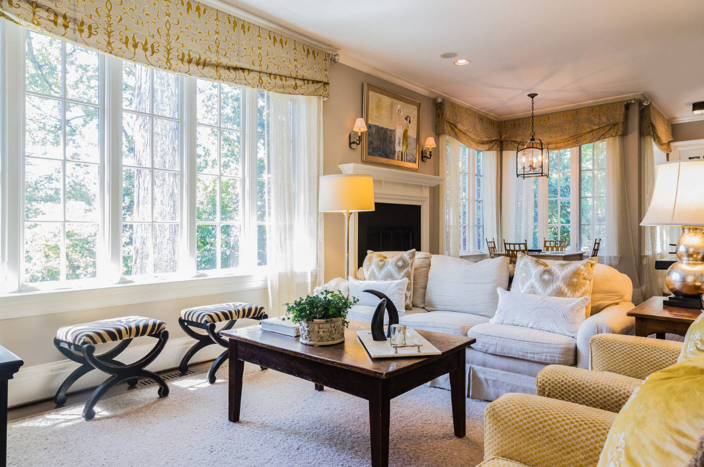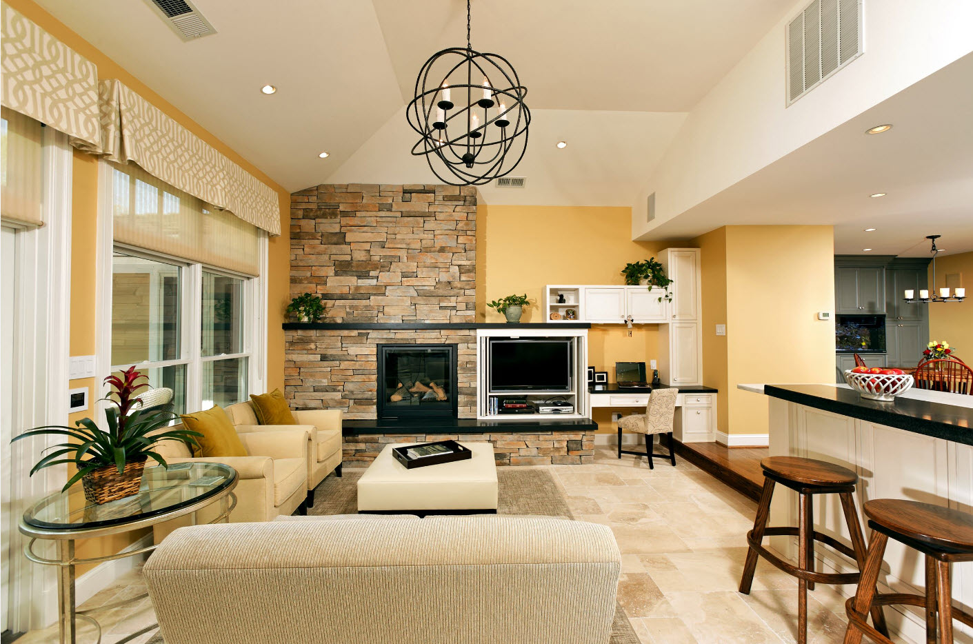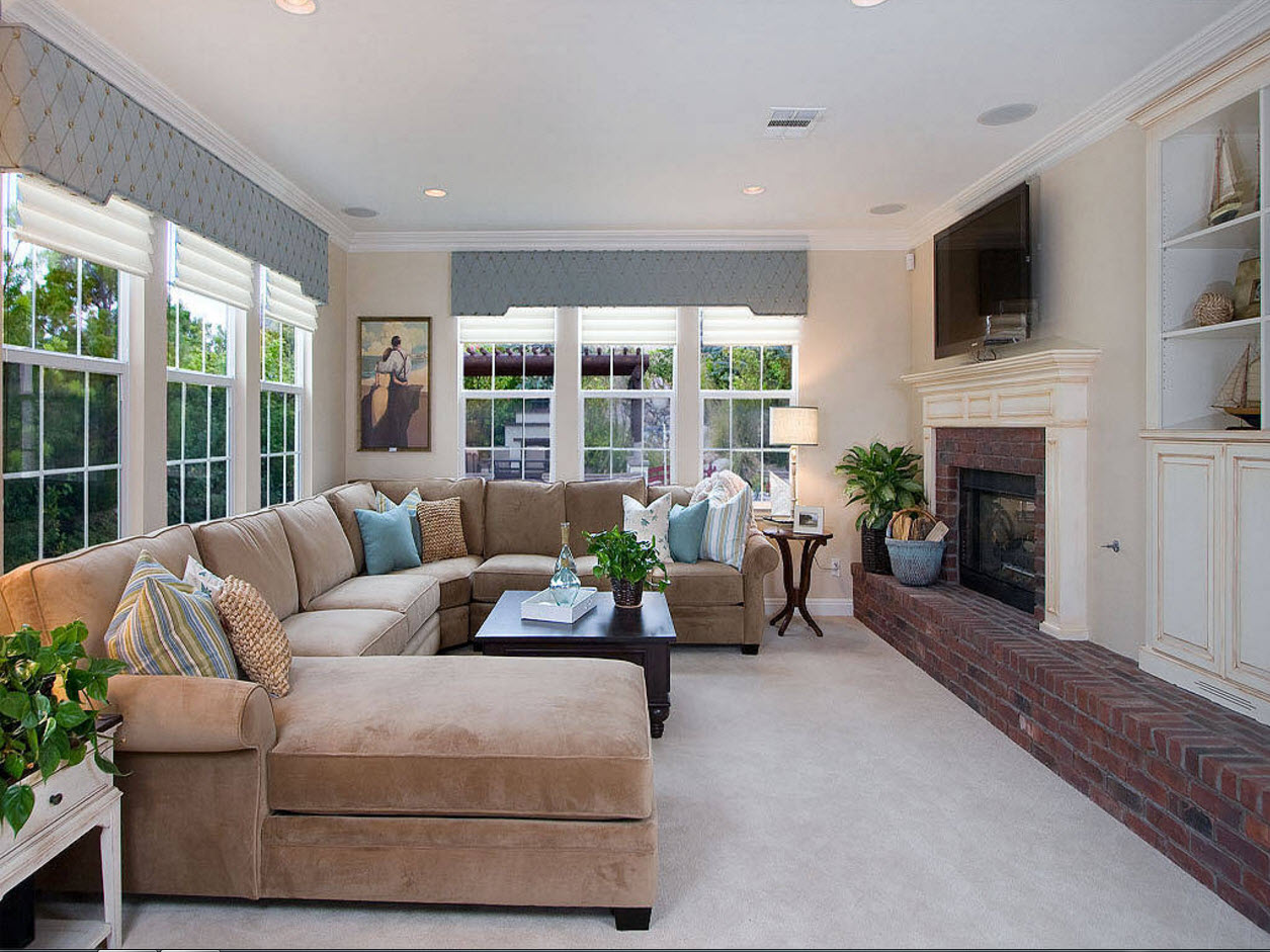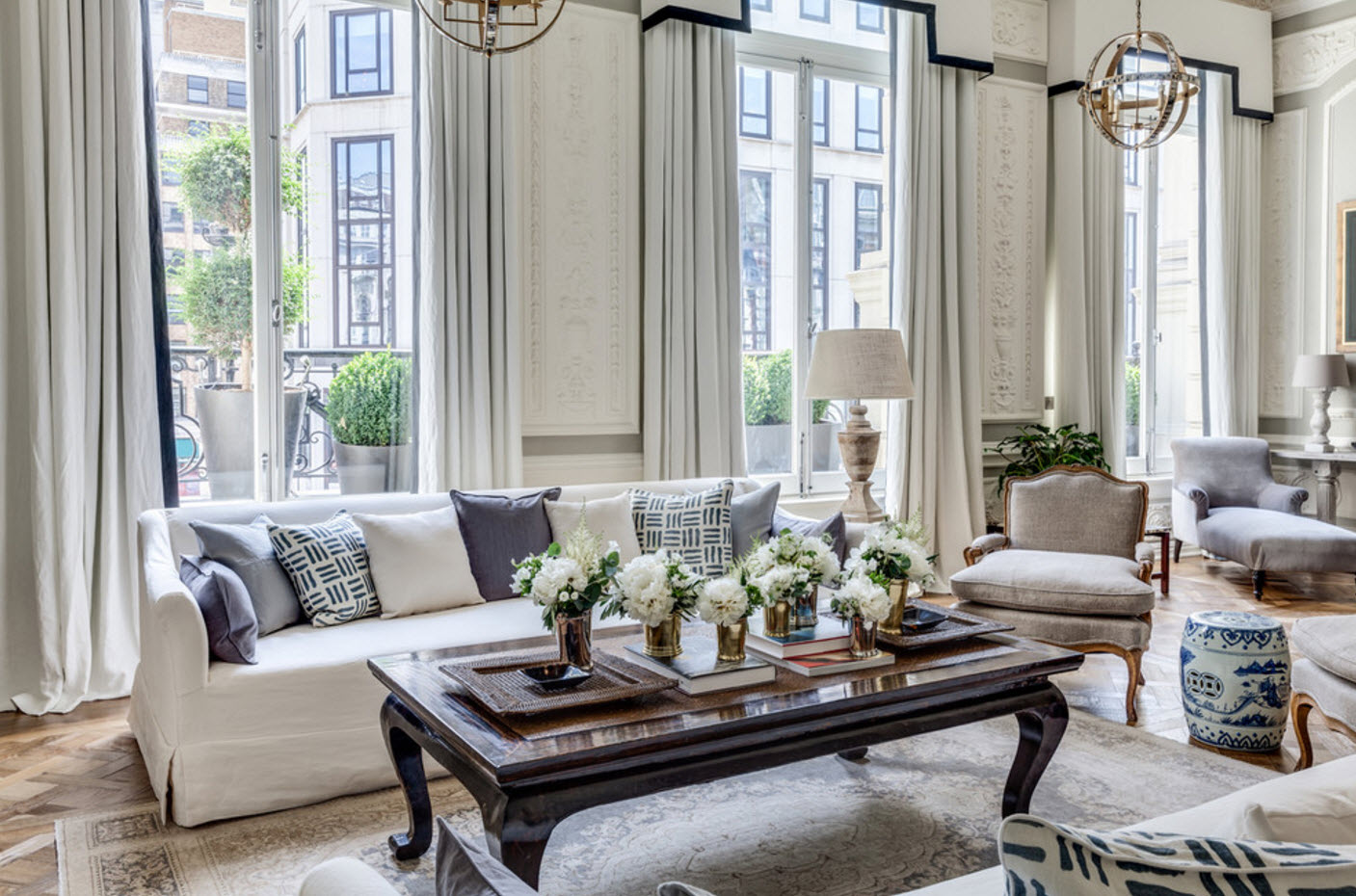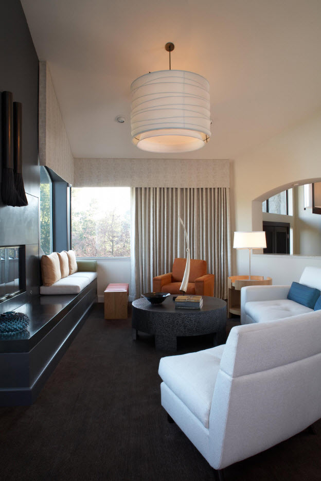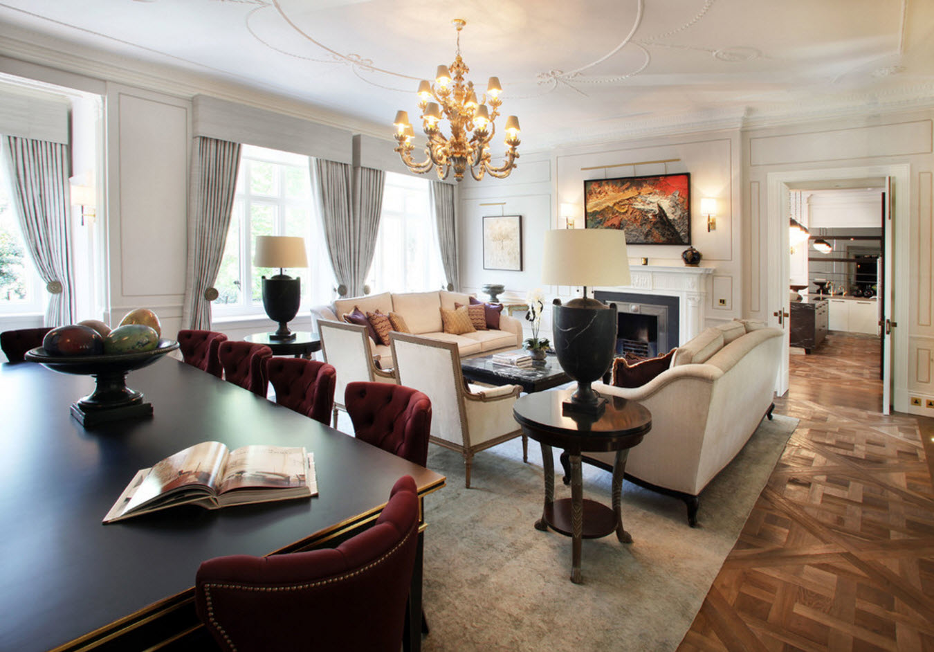 Гостиная – визитная карточка любого жилища. В этой комнате собирается по вечерам вся семья для отдыха и общения, именно здесь принимаются гости по выходным и праздникам. Залу или гостиной необходимо быть непросто комфортными, функциональными и практичными, но и красивыми, респектабельными, стильными. При оформлении столь значимых помещений важна каждая мелочь. Неудивительно, что все планирующие ремонт стараются заранее продумать не только планировку, отделку и выбор мебели для гостиной, но и наметить материал и цветовую палитру для текстильного оформления интерьера. От внешнего вида драпировки окон в зале (а их может быть несколько и занимать они могут достаточно большую площадь пространства) во многом зависит образ всего помещения. В данной публикации мы хотели бы привести примеры использования такого декоративного элемента оформления оконных проемов, как ламбрекен. Надеемся, что вы сможете найти интересные варианты декорирования окон при помощи ламбрекенов на примере дизайн-проектов гостиных, собранных по всему миру.