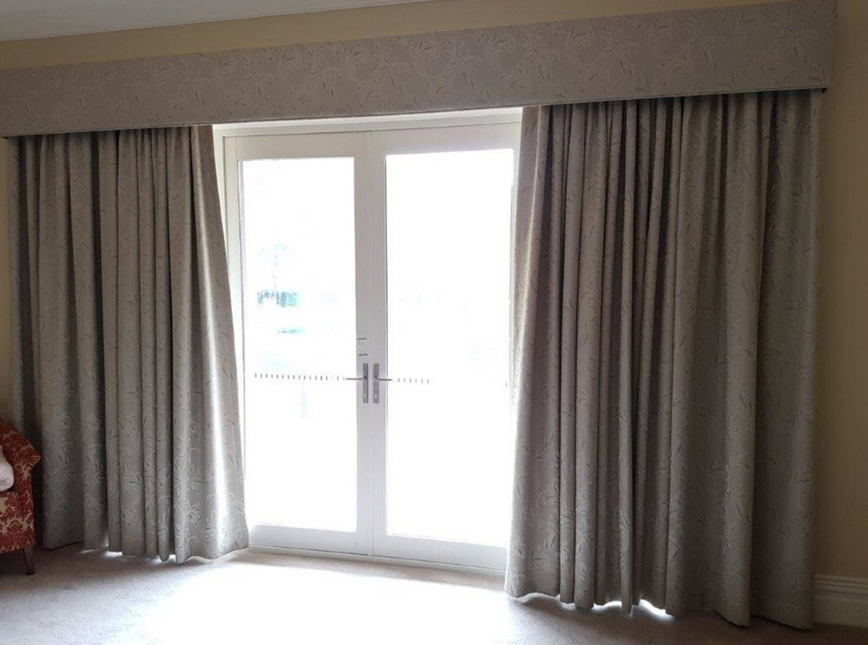 Традиционные шторы могут быть выполнены из той же ткани, что и ламбрекен…