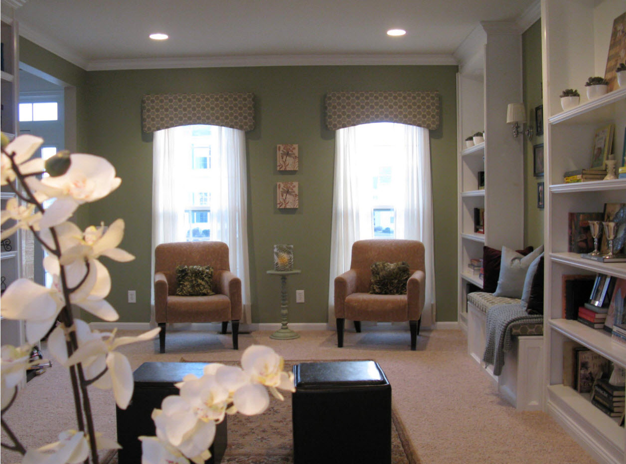 Фигурный ламбрекен сам по себе способен стать акцентным элементом интерьера, притягивающим все взгляды. Если исполнить эту часть драпировки оконных проемов в ярком цвете или существенно отличном от общей цветовой палитры интерьера, то акцентирование будет наиболее полным.