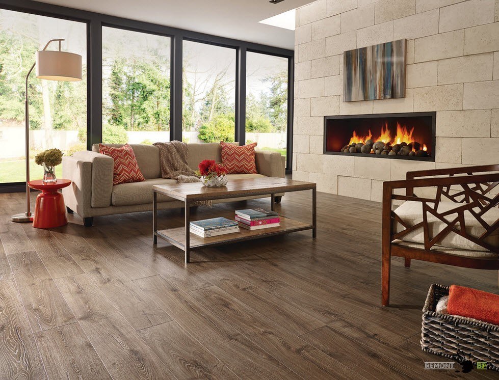 - цвет ламината должен сочетаться с отделкой и меблировкой комнаты – если все поверхности оформлены в темных тонах, то образ помещения получится угнетающим и наоборот абсолютно светлое пространство может вызывать неприятные ассоциации с больничной палатой;