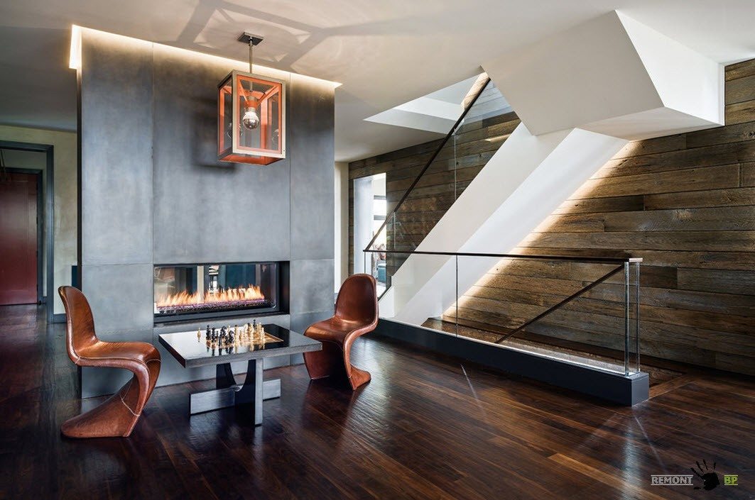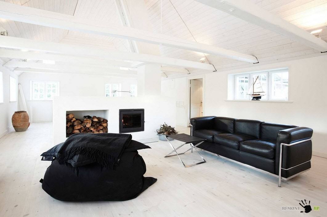 Еще один пример эффектного использования темного, практически черного цвета напольного покрытия в контрастном интерьере. В помещениях с настолько темными элементами дизайна важно не переборщить и обеспечить достаточный уровень освещенности, как естественной, так и искусственной.