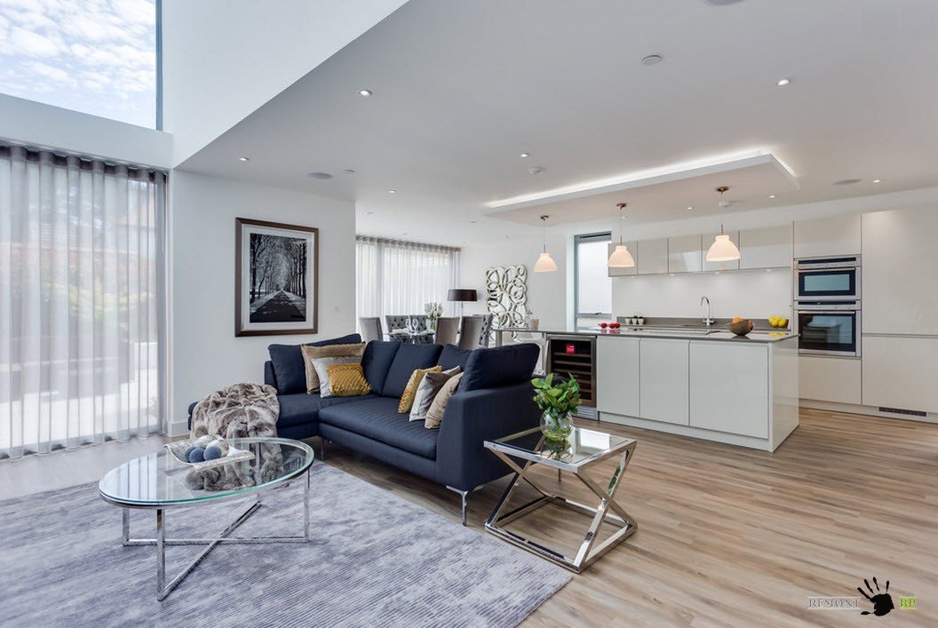 Технологические свойства ламината позволяют укладывать его даже в зонах с высокой влажностью и температурными перепадами, такими как кухня. Если ваше гостиная объединена с кухонной зоной, вы можете укладывать общее напольное покрытие для создания единого образа помещения, не беспокоясь о воздействии на материал влаги, высокой проходимости и механических повреждений.