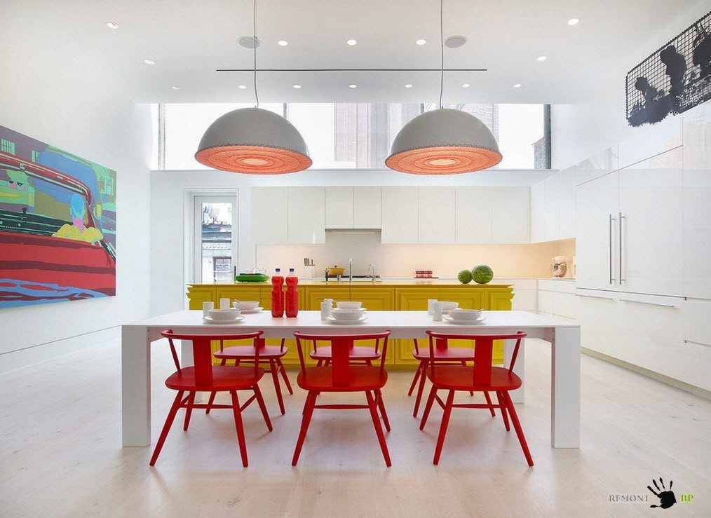 То же самое касается и кухонных помещений с очень яркой меблировкой, где напольное покрытие должно выступать лишь в качестве нейтрального фона.