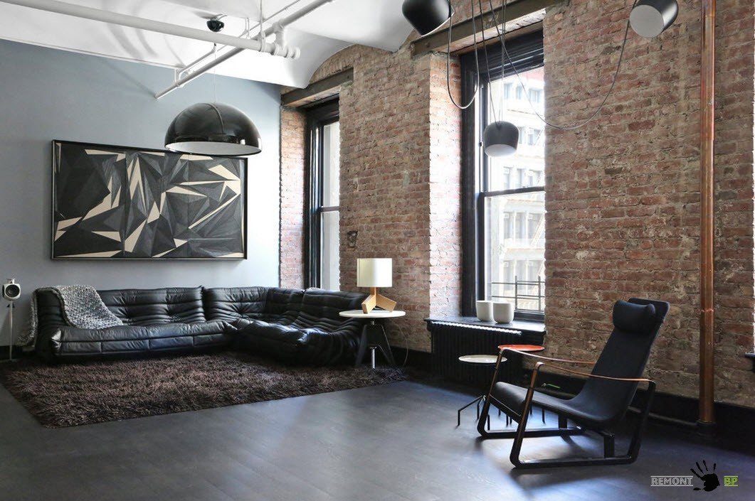 Ламинат – достаточно универсальное напольное покрытие, которое будет гармонично смотреться практически в любом стиле интерьера, важно только подобрать соответствующий рисунок и цветовую палитру материала. В гостиной в стиле лофт ламинат также актуален, как и в комнате, оформленной в классической стилистике.