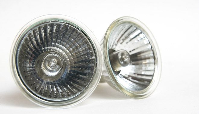 Галогенные виды лампочек эффективнее предыдущих в 2-4 раза. Они обладают большей светоотдачей и более длительным сроком службы. Вдобавок, они компактны и дешевы. Такие лампы наполнены галогенными парами и похожи принципом работы на предыдущие.