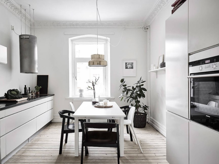 Сдержанная, правильная и аккуратная классика – отличная основа для лепного декора из геометрических и растительных элементов.