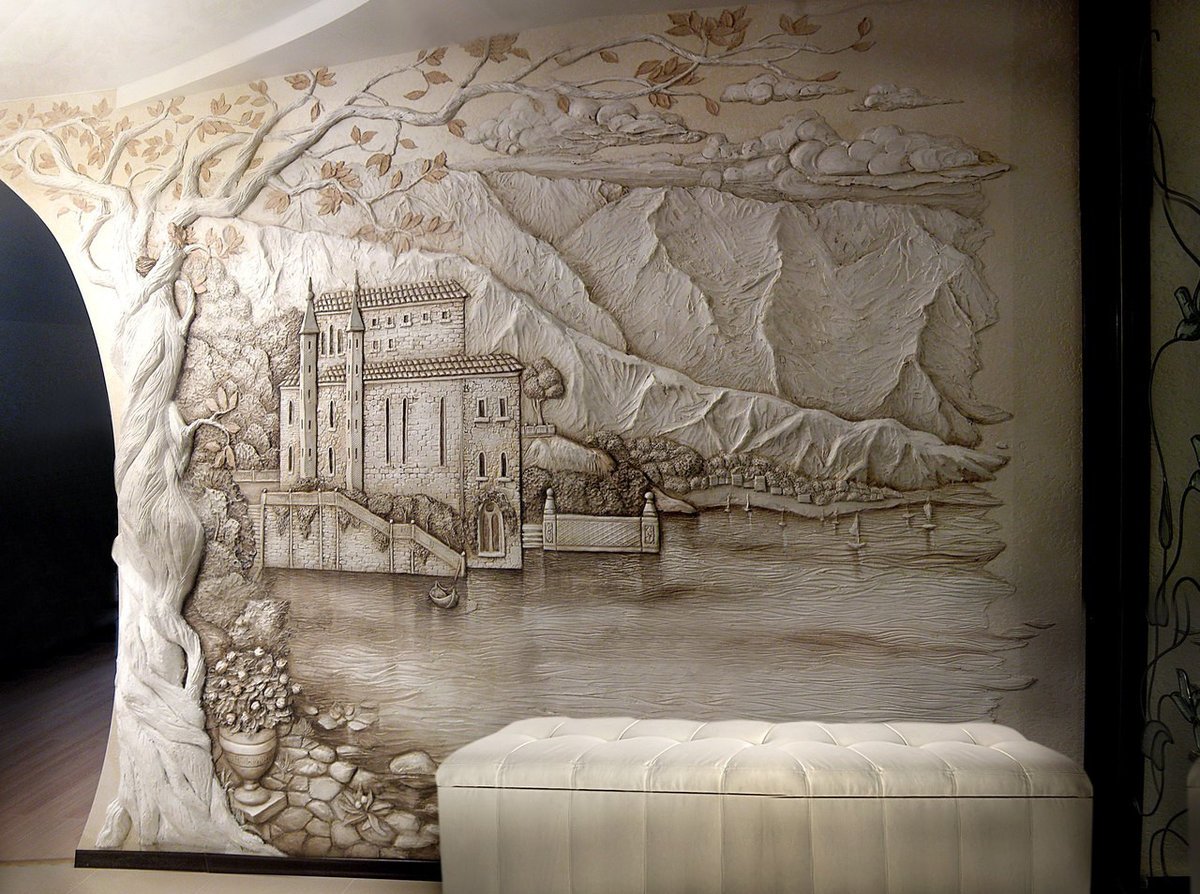 Также молдинги могут увеличивать пространство и служить окантовкой картин, зеркал, панно и прочих декоративных украшений. А вот барельефы выполняют исключительно декоративную функцию. Они крепятся на стене под потолком не более чем до середины стены.