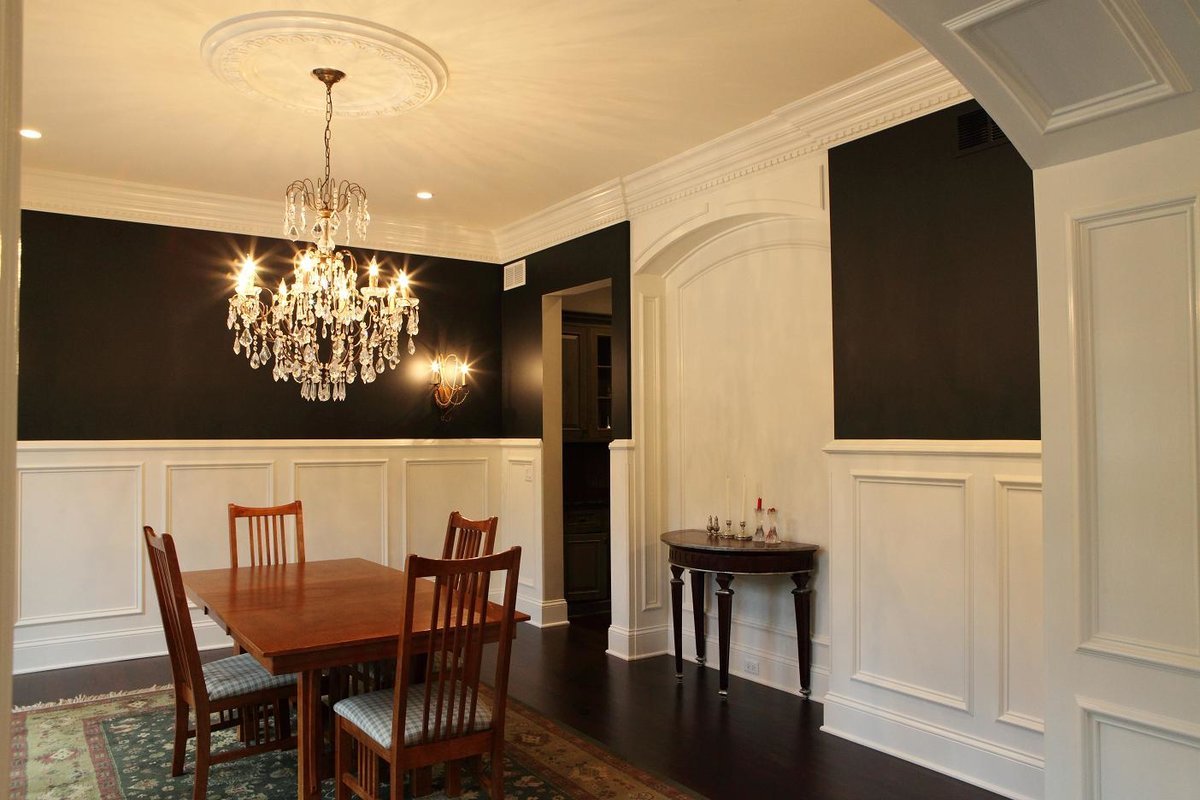 Кроме того, контуры из лепки могут поднимать или опускать потолок. Широкие полосы декора, расположенного в верхней части стены (под потолком) будут опускать потолок, а тонкие полосы в виде плинтуса или потолочных молдингов наоборот – поднимут потолочную поверхность.