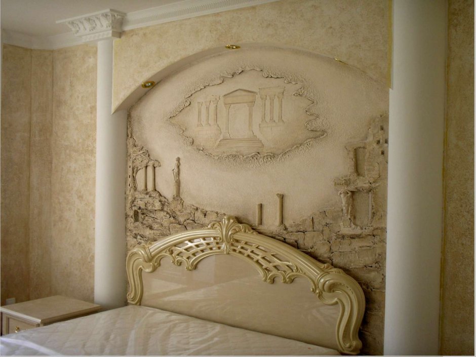 Также не стоит забывать про колонны и полуколонны, часто используемые в виде пилястр и капителей. Это может быть, как самостоятельный декор, выполняемый отдельно от стены, так и украшение стенной поверхности.