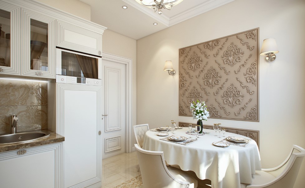 Античную лепку обычно не делают в маленьких помещениях, так как в них декор будет теряться в числе других деталей интерьера.