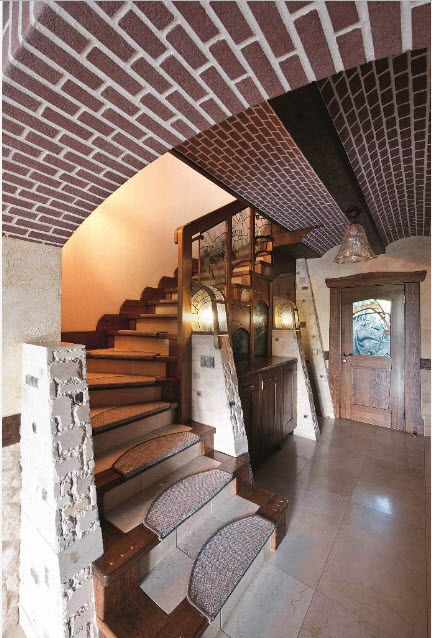 Лестница, выполненная из камня – основательная конструкция с высоким уровнем надежности. Лучше всего подходит для установки в кирпичном частном доме, из-за своей визуальной нагрузки. Зачастую такие массивные лестницы советуют устанавливать не внутри, а снаружи, при этом их можно красить или оштукатуривать.