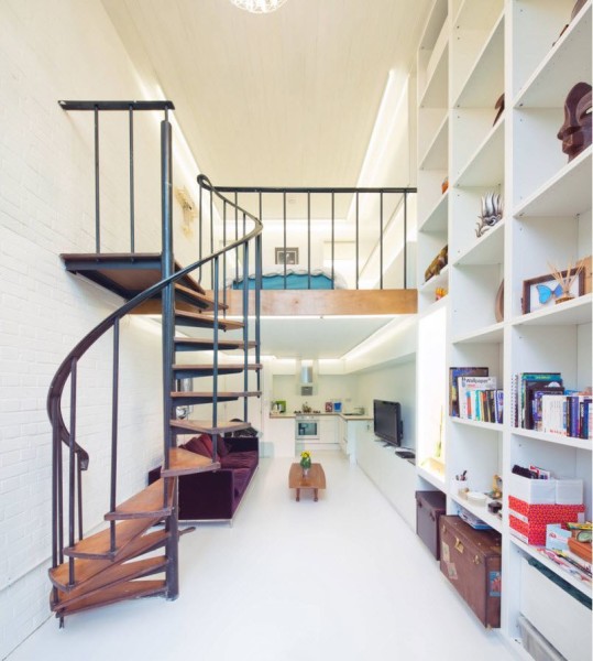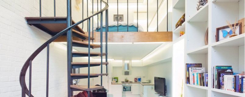 Преимущество винтовой лестницы еще и в том, что располагаться она может в любом месте помещения. Для установки спиральной конструкции не нужен угол или наличие стен, которые могли бы использоваться в качестве опоры. Винтовая лестница может располагаться прямо в центре комнаты, становясь координационным элементом интерьера.