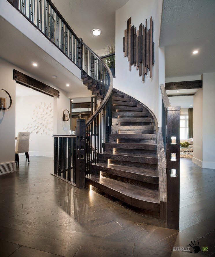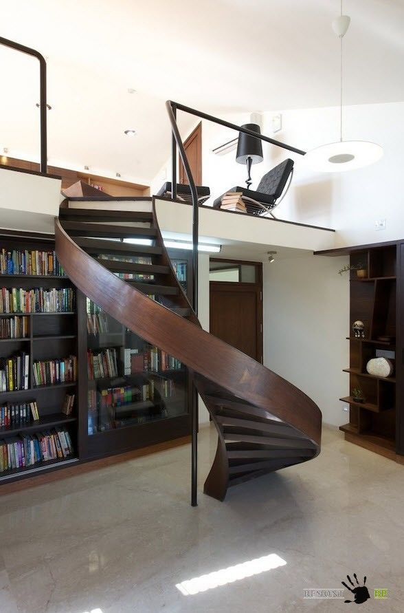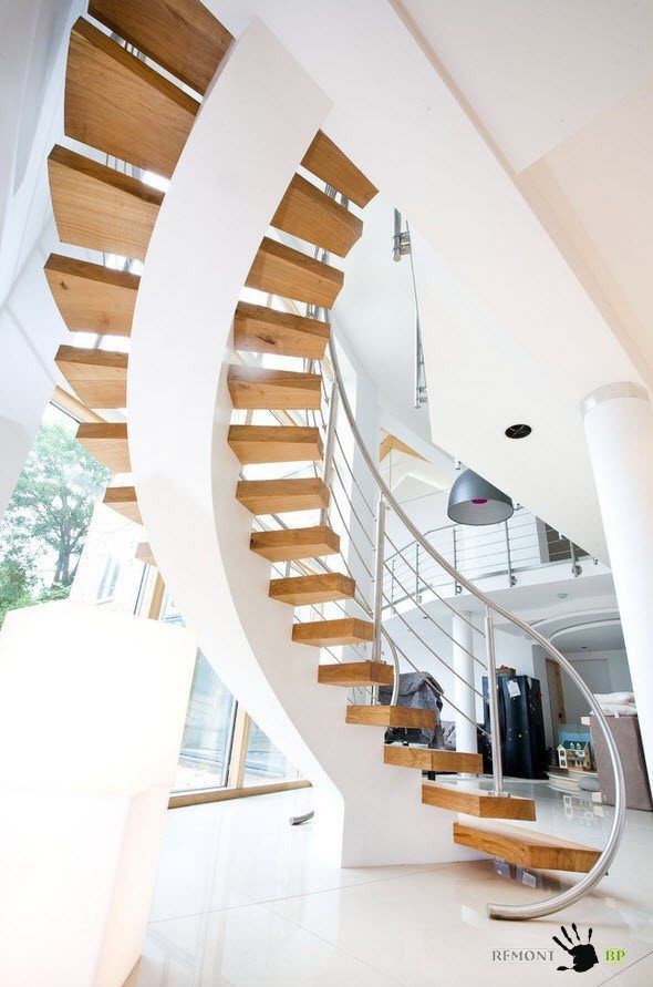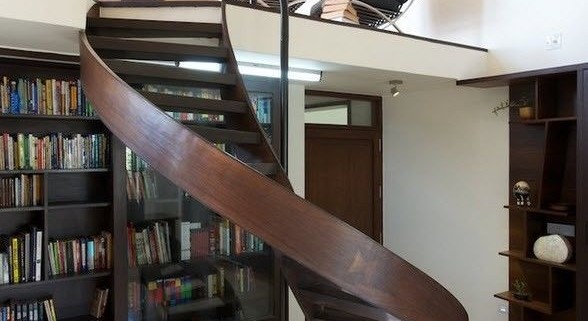 Винтовые лестницы особенно популярны в частных домах, где для обустройства сооружения предназначено немного полезного пространства помещения. Спиральные лестницы состоят из степеней, поручней и стойки (основания). Это удивительно, но винтовые лестницы могут быть не только круглыми, но и восьмиугольными, квадратными. В домах, где есть маленькие дети или пожилые люди с проблемами передвижения, возможно и не стоит использовать столь оригинальные модели, но в остальных случаях, винтовые лестницы способны украсить любой интерьер, не говоря уже о практической стороне вопроса.