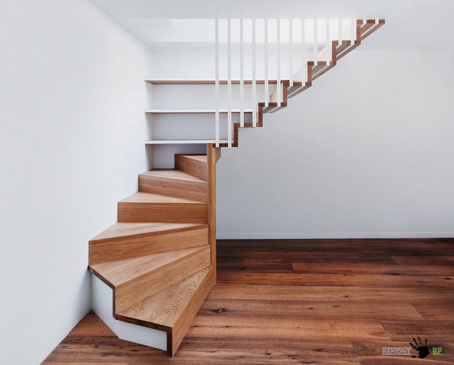 Способ крепления ступеней в таких конструкциях будет зависеть от количества балок, прикрепленных к основанию – две или одна. Косоуры, в свою очередь, могут быть прямыми, ломаными или винтовыми.