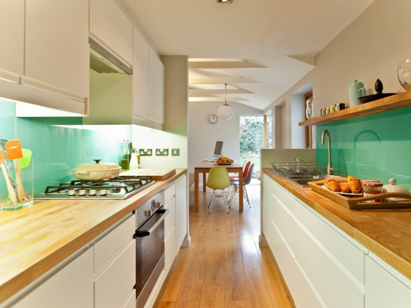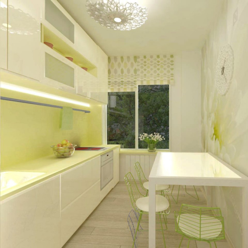 Отдавать предпочтение светлым тонам. Светлые оттенки визуально увеличивают пространство и делают кухню светлее.