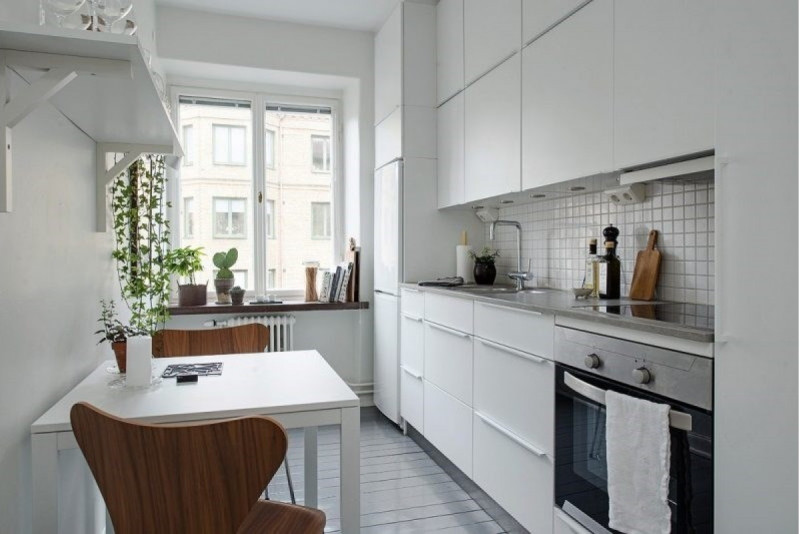 Оттенки белого – это классический выбор для интерьера маленькой кухни.