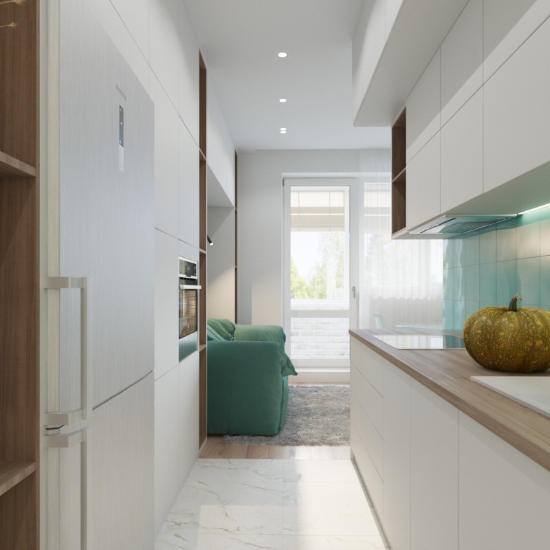 Оттенки белого – классический выбор для маленькой кухни. Белый цвет отражает свет, делая помещение светлее и просторнее. Кроме того, он сочетается с любыми другими цветами, что позволяет добавлять яркие акценты в интерьер.