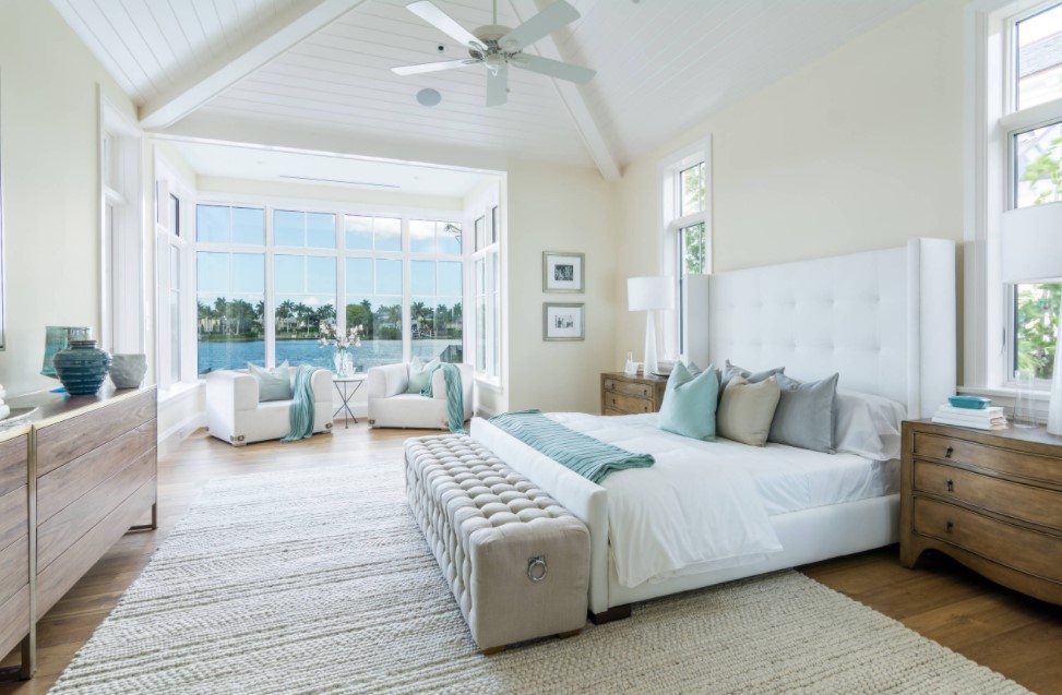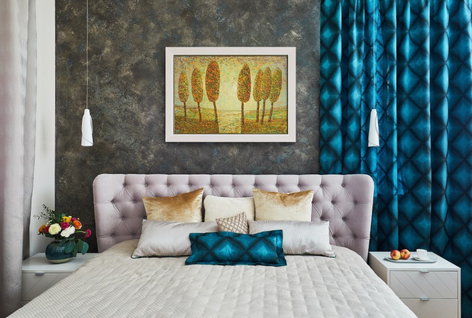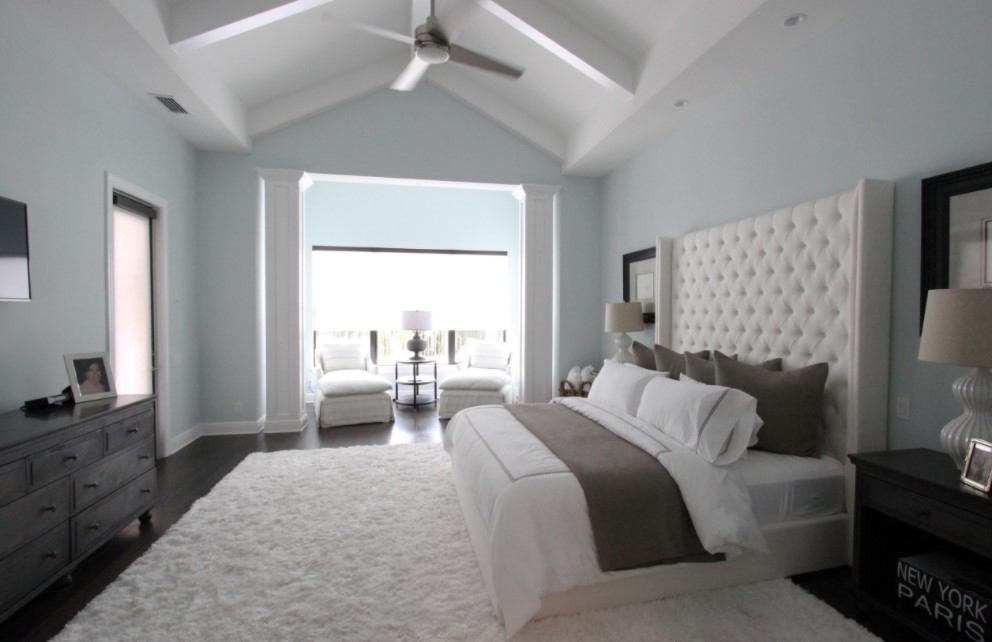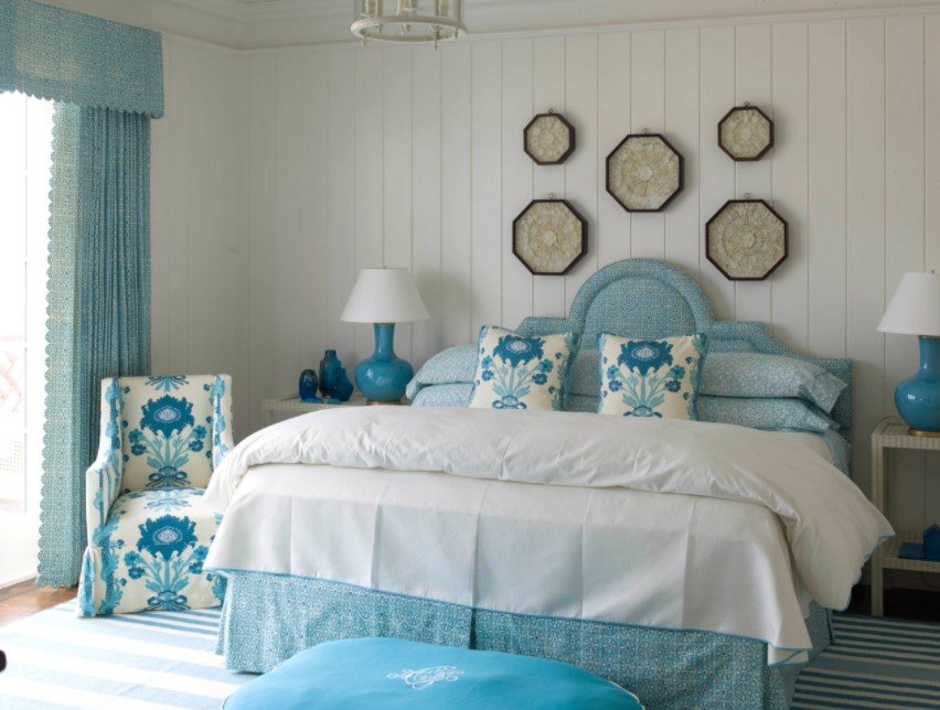 Более холодные, голубые, синие тона помогут расслабиться и создать легкую прохладную обстановку. Такую спальню здорово делать на южной стороне, где много солнца и света.