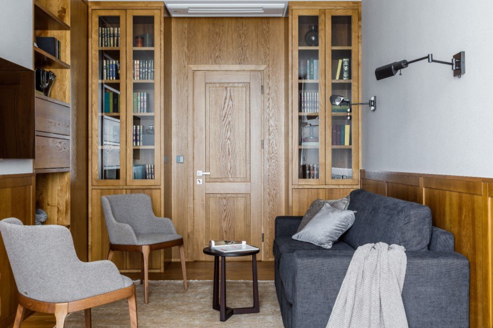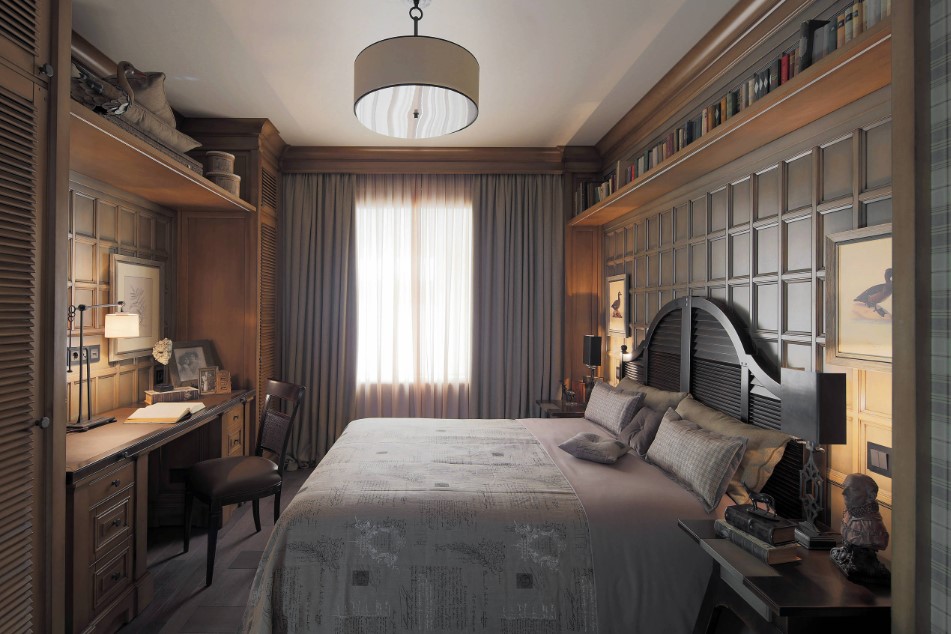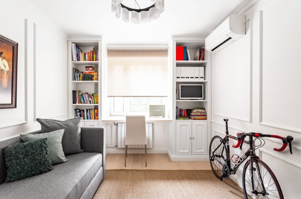 Если в доме не так много книг, не стоит изгаляться и выбирать слишком тяжелые или замысловатые полки или стеллажи. Не стоит перегружать помещение лишними массивными деталями мебели. Можно приобрести классические полки на 1-2 уровня.