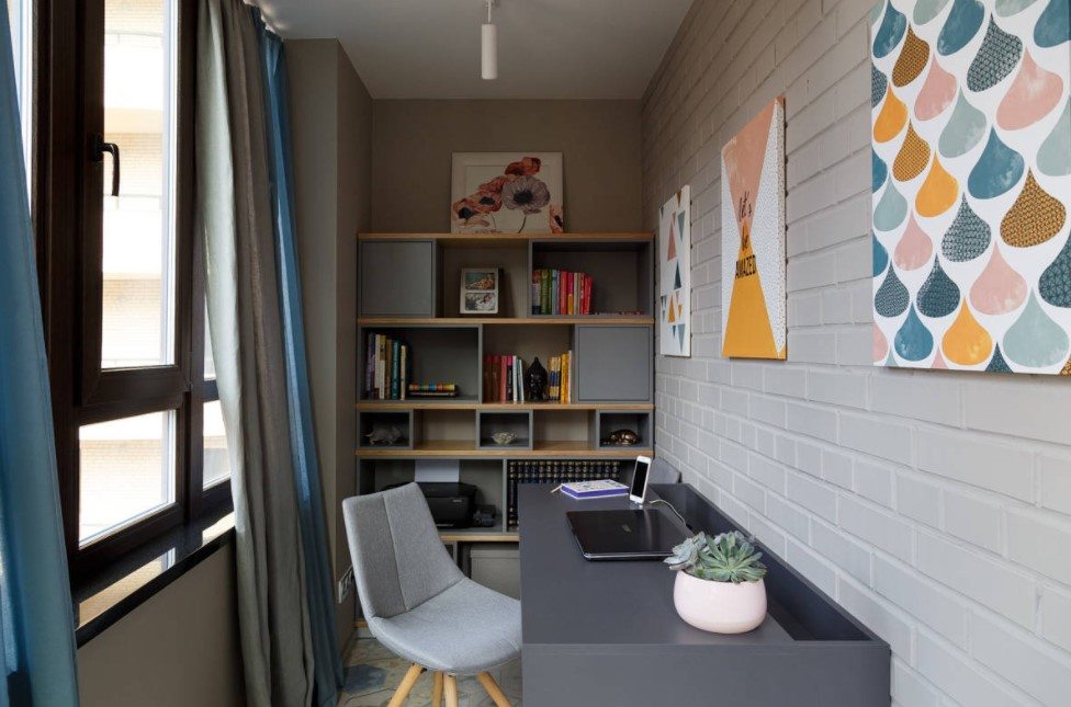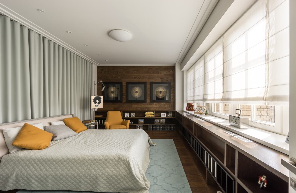 Также для небольших по размеру комнат будет неплох вариант с угловой полкой для книг. Такая полка очень функциональна, не занимает много места, и в то же время является своеобразным декор-элементом, который добавит помещению уюта и сделает его более домашним.