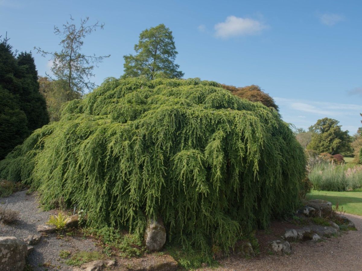 Хорошим вариантом для участка является зарубежный «гость» – канадский болиголов. Это хвойное вечнозеленое растение, имеющее мелкие по размеру кружевные узорчатые иголки. Эта разновидность больше подойдет для высадки в тени.