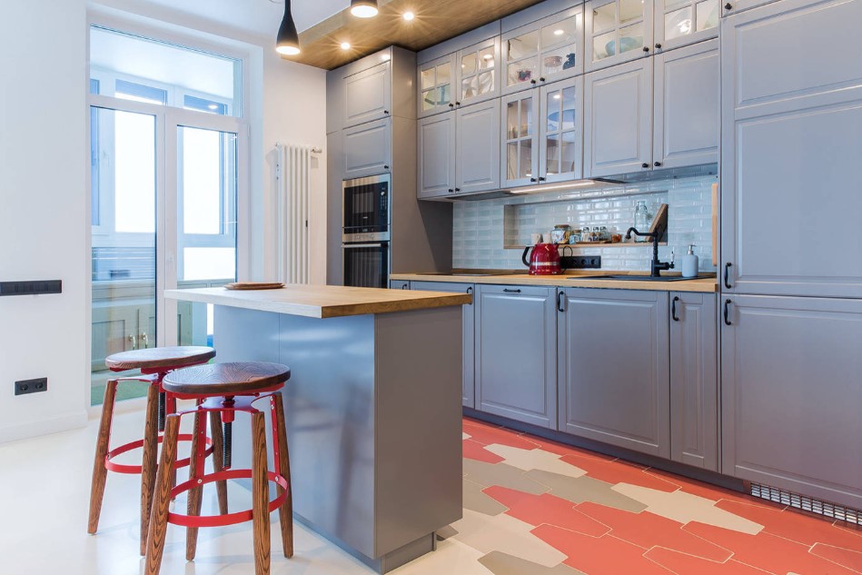 Керамическая плитка представляет собой штучную облицовку из обожжённой глины. Видов керамики достаточно большое количество: керамогранит, кафель, клинкер, майолика, фарфор, фаянс и другие. Для отделки пола выбирают напольные керамические модели. Раньше керамическая плитка использовалась, в основном, для отделки пола в ванных и санузлах, теперь её используют на полу в разных помещениях. В числе преимуществ данного вида напольного покрытия – влагоустойчивость, экологичность и безопасность для жильцов, долговечность и прочность, простота ухода, возможность комбинирования разных видов, размеров и форм плитки. Минусов у керамической плитки всего два: возможны сколы плитки при падении тяжелых предметов, но это можно исправить. А также постоянно холодная поверхность, что тоже можно исправить с помощью системы «теплый пол».