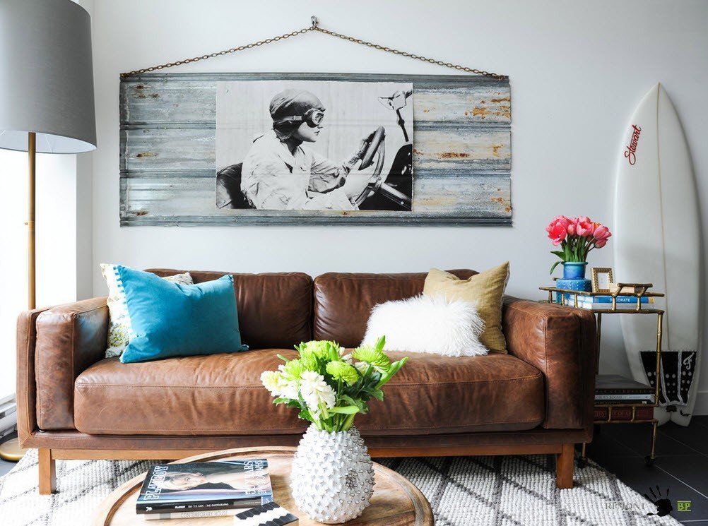 За кожаным диваном проще всего ухаживать – его поверхность легко очищается. К тому же, многие домовладельцы любят мебель с кожаной обивкой за эффект благородства и достатка, который привносит в интерьер природный материал (или его удачная искусственная имитация). Но важно помнить, что в жаркое время кожаная поверхность не дает нужной вентиляции, а в холодное – не согревает. При наличии принудительной вентиляции и систем обогрева помещения эти проблемы снимаются.