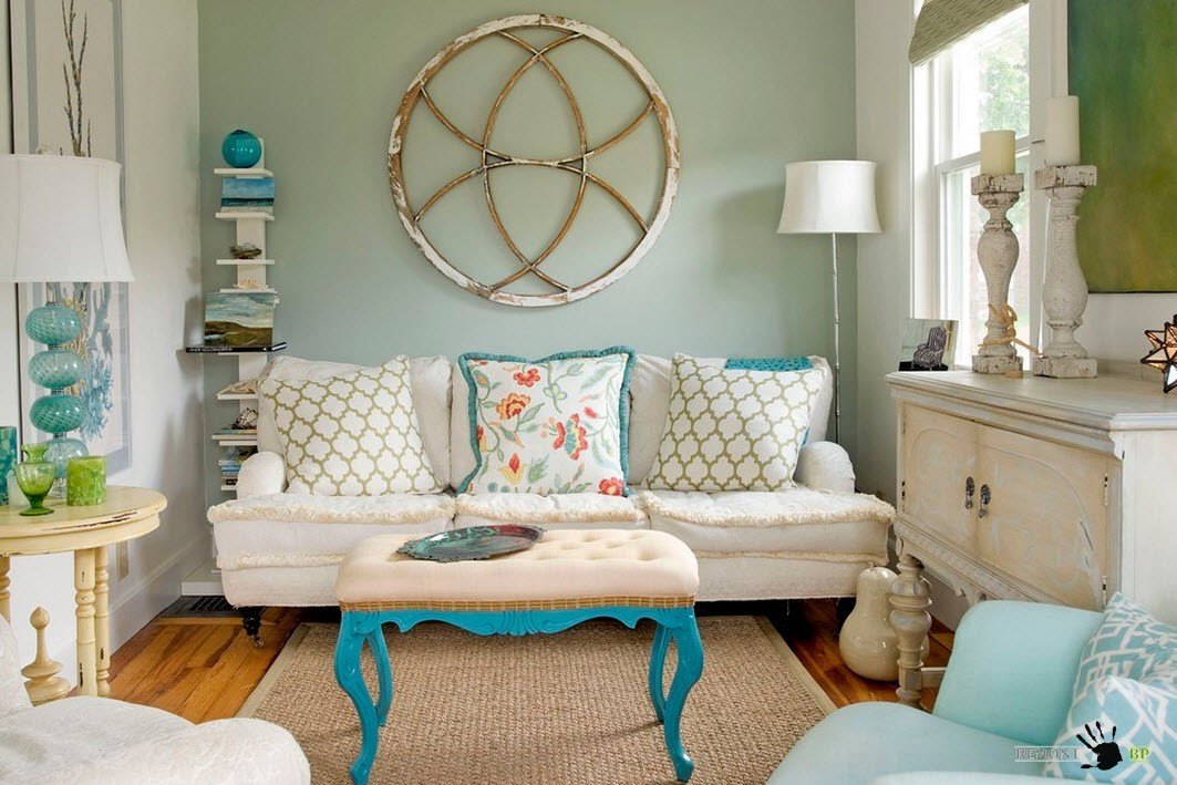 Применение пастельных тонов для отделки и меблировки гостиной может стать успешной альтернативой использованию белого цвета для оформления вертикальных плоскостей комнаты. Бежевая палитра создаст теплую и приятную атмосферу. Голубовато-серые тона станут нейтральным фоном для контрастной меблировки и придадут помещению ощущение свежести и прохлады. Светло-зеленые, мятные, фисташковые и оливковые оттенки, щедро разбавленные белым тоном, создадут расслабляющую обстановку, способствующую очищению мыслей и эмоций, отдыху после сложного трудового дня.