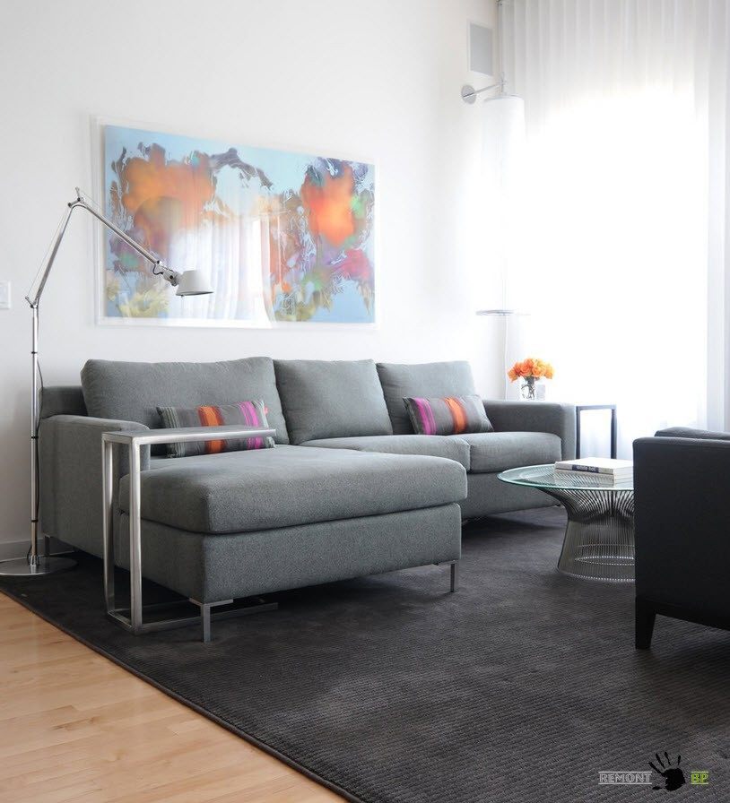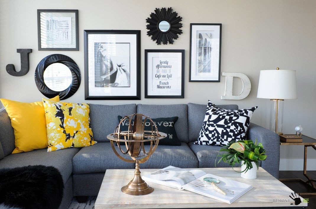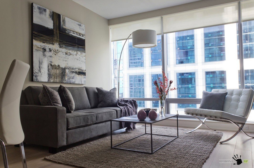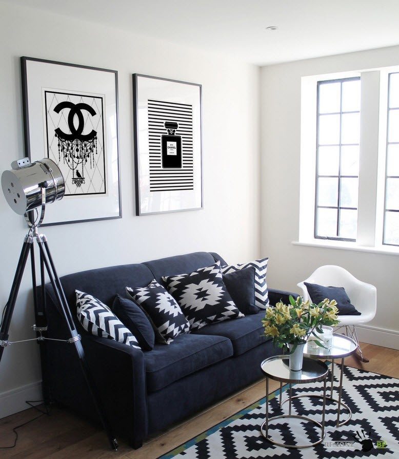 Контрастные сочетания светлых и темных тонов – универсальный вариант создания интересного интерьера для помещений любых размеров. Но важно учитывать, что для маленьких комнат необходимо использовать белый цвет в качестве преобладающего, промежуточный (один из оттенков серого) в качестве цветового решения для крупных предметов (дивана или кресел), а черные тона – для дозированного применения в декоре, текстиле.