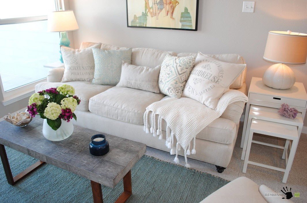 Выбирая диван для гостиной, старайтесь помнить не только о сочетании цвета его обивки с отделкой и остальными предметами интерьера, но и о том, что он будет подвергаться достаточно активной эксплуатации. Существует немало моделей со съемными чехлами, которые легко стираются в стиральной машине. Можно также заказать пошив чехла для дивана из практичной ткани, модель которого не предусматривает съем текстиля.