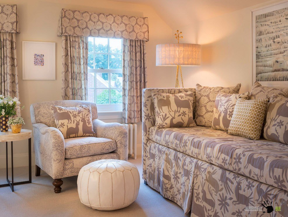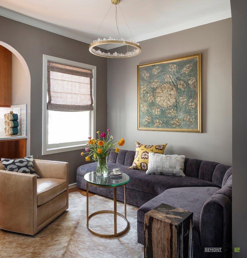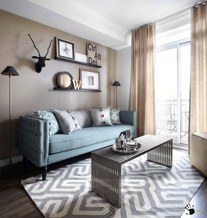 Если по какой-то причине однотонные стены вас не устраивают и вы решили использовать обои с принтом для отделки стен в небольшой комнате, то помните, что применение крупного рисунка создаст эффект захлопнутой шкатулки, сузит и без того небольшую комнату. Мелкий рисунок позволит создать иллюзию большего пространства, тоже самое относится и к применяемому в гостиной текстилю.