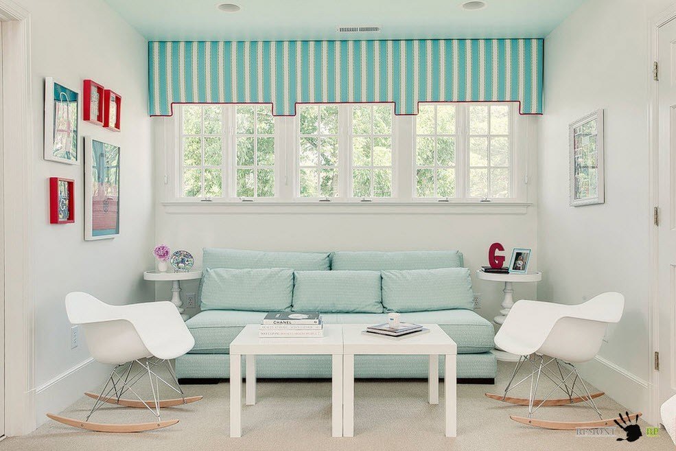 Используйте горизонтальные и вертикальные полосы в отделке для визуального расширения пространства в высоту или ширину по своему усмотрению. Того же эффекта можно добиться от полосатого принта на обивке мягкой мебели или ковровом покрытии. Но помните, что полоски не должны быть слишком пестрыми, это скажется на визуальном восприятии помещения небольших размеров.