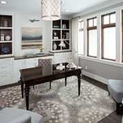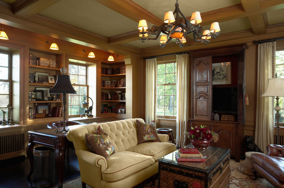 Это самый важный элемент для рабочего кабинета. Так как это помещение предназначено именно для работы на дому, то, естественно, рабочее место должно быть удобным, иметь необходимые размеры и высоту. Для тех, кто по специфике своей работы пользуется чертежной доской или другими инструментами, а также большими книгами, наилучшим размером стола будет 140 на 70 сантиметров. Даже если вы не пользуетесь ничем из вышеперечисленного, то большие габариты стола вам все равно не помешают, здесь прекрасно впишется персональный компьютер и еще останется достаточно места. К тому же удобно будет перелистывать большие папки, к примеру. Разумеется, для большого стола потребуется много места, но если площадь кабинета этого не позволяет, есть два решения: либо приобрести стол меньшего размера, либо – если вам все-таки требуется больше рабочего пространства – сократить количество или размеры другой мебели.