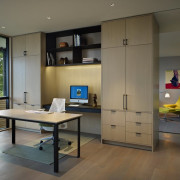 Конечно, в каждом рабочем кабинете необходимо иметь место, куда складывать документы, папки, книги, файлы и так далее. Для этого хорошо подходят стеллажи, расположенные вдоль стены.