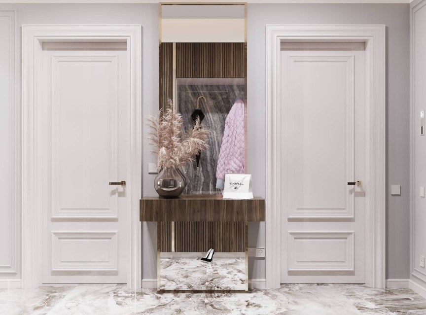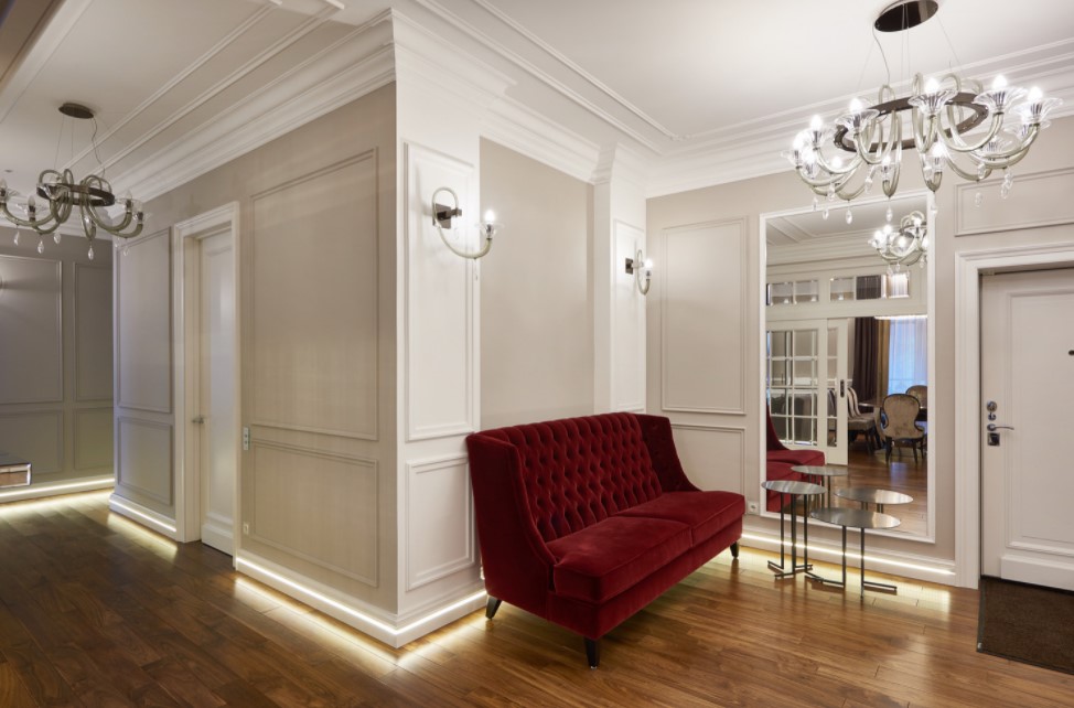 А для того, чтобы придать освещению более интересный вид, сделайте яркие акценты на отдельных деталях, например, зелёные, синие, фиолетовые и многие другие яркие цвета. Откажитесь от захламлённого пространства в пользу стильного и минималистичного интерьера. Не забудьте и про декор. В прихожей его обычно не много, однако можно украсить стены картинами, оригинальными часами и светильниками, а также поставить красивые статуэтки.