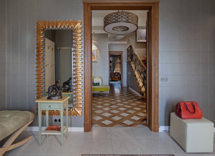 Прихожая предстаёт одной из самых маленьких, однако не менее значимых, комнат в каждом доме. Прихожая – лицо дома, она встречает гостей и создаёт первое впечатление. Именно поэтому очень важно уделить должное внимание обустройству этого помещения. Зачастую проектировщики урезают пространство в этой комнате в пользу кухни или гостиной, что является большой ошибкой, ведь прихожая в таком случае остаётся узкой и маленькой.