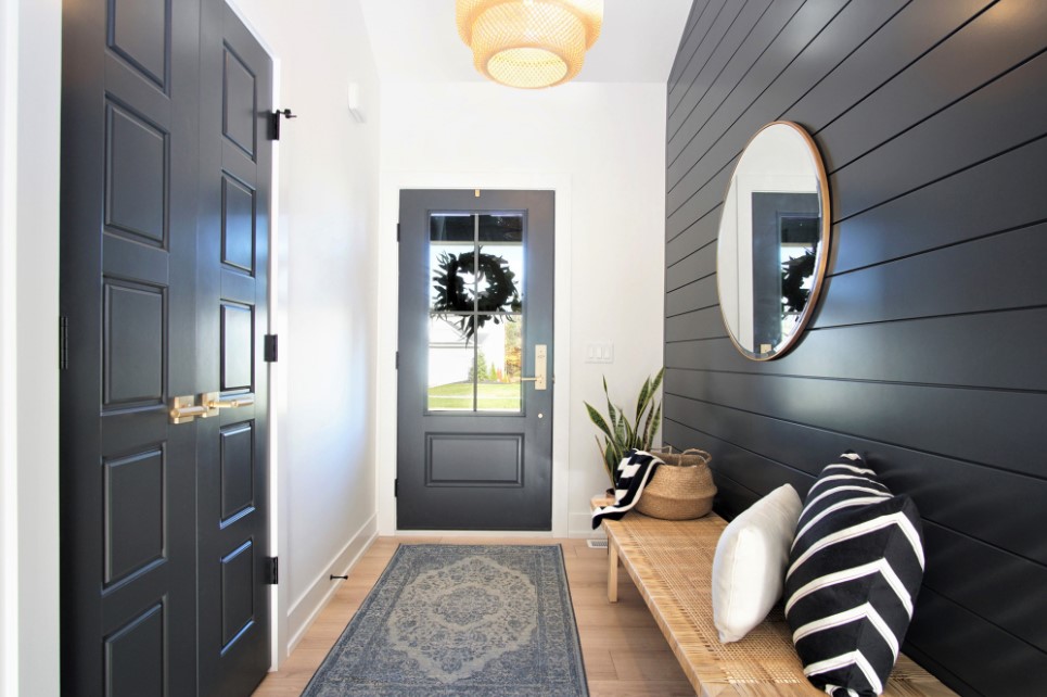 Помните о размере прихожей! В маленьких комнатах стоит избегать тёмных цветов и горизонтальных полос, используйте мягкие и светлые оттенки. Цветовая палитра этого помещения должна гармонично вписываться в общую стилистику дома. А также лучше отказаться от холодных оттенков белого, оливкового и голубого цветов, так как на таких поверхностях заметны пятна и грязь, а прихожая, всё-таки, подвергается механическим воздействиям.