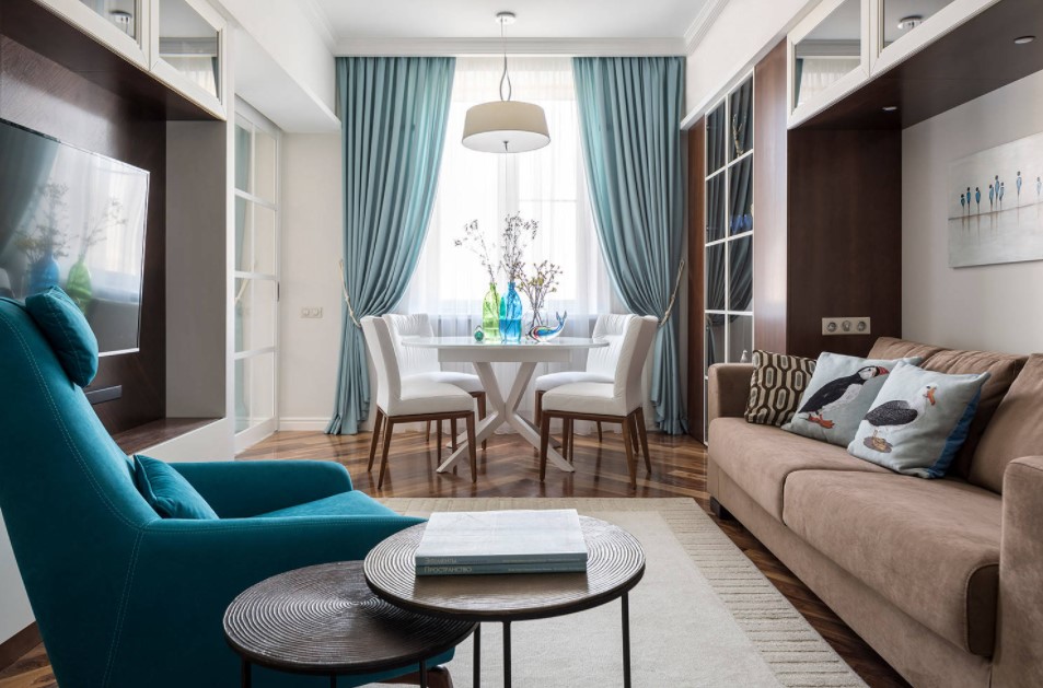 - Функциональность. Предметы выбранной меблировки должны быть функциональными. Раскладывающиеся современные диваны, практичные шкафы и стеллажи помогут как можно лучше и удобнее использовать пространство комнаты.