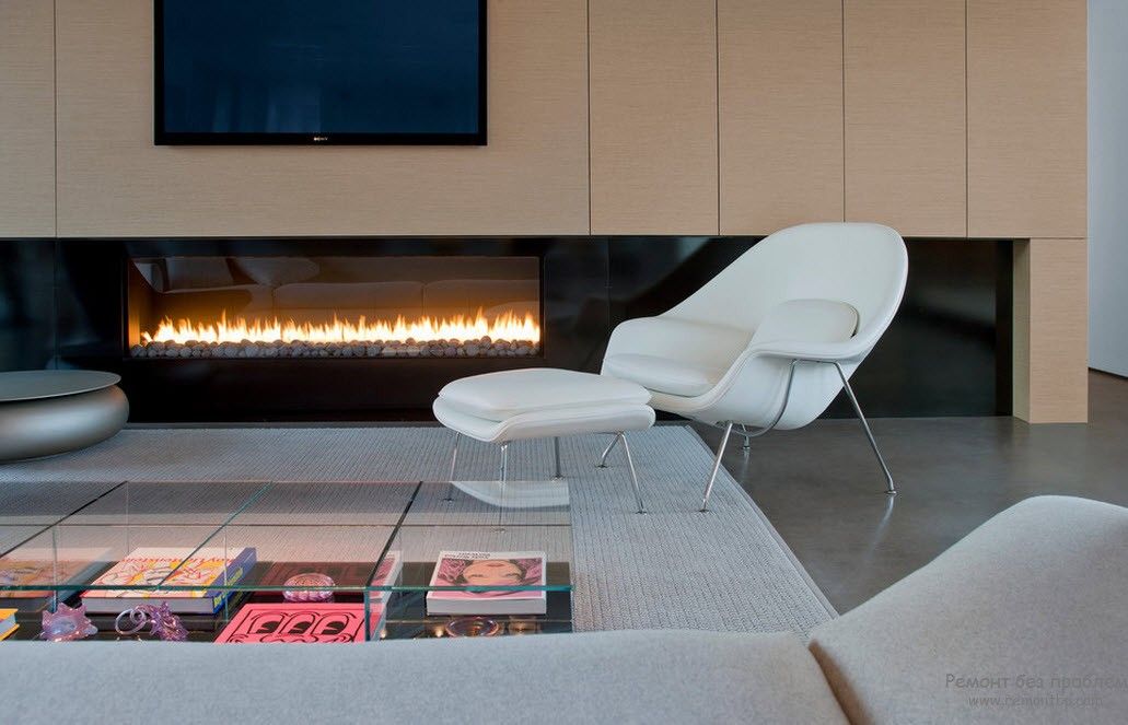 Стулья и кресла возможны из пластика, в том числе, полупрозрачного. Хорошо, если в интерьере присутствуют один – два предмета мебели, имеющие причудливую форму, например, оригинальный журнальный столик или же необычное кресло.