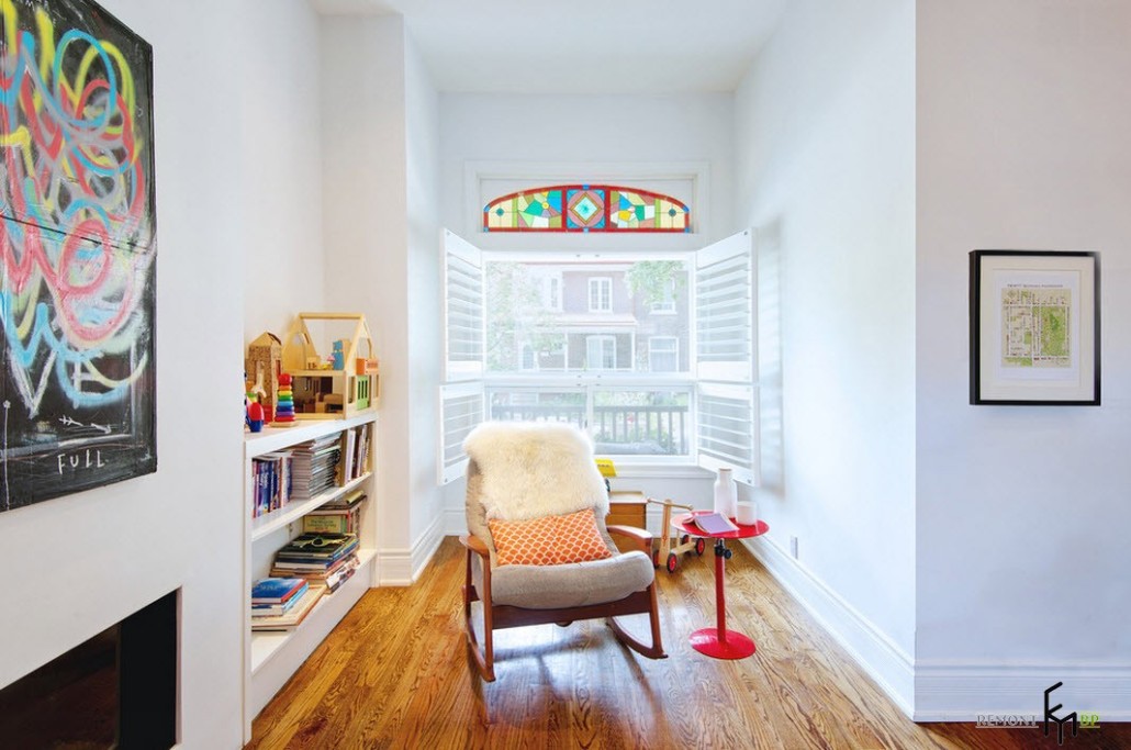 Также дополнит атмосферу детской комнаты уютом большое удобное кресло с мягкой обивкой. Такая модель прекрасно подходит для кормления ребенка.