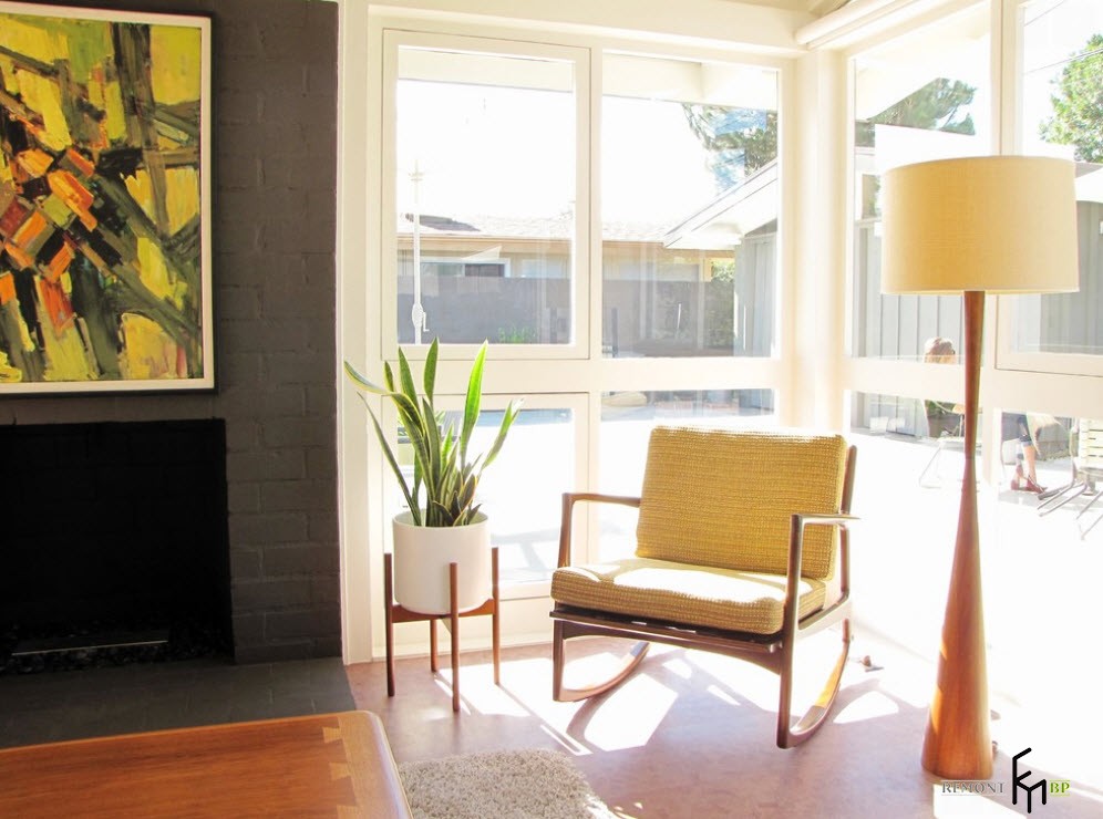 В интерьере гостиной кресло-качалку можно расположить перед телевизором, журнальным столиком или, по традиции, рядом с камином. Главное – чтобы дизайн кресла гармонировал с интерьером комнаты.